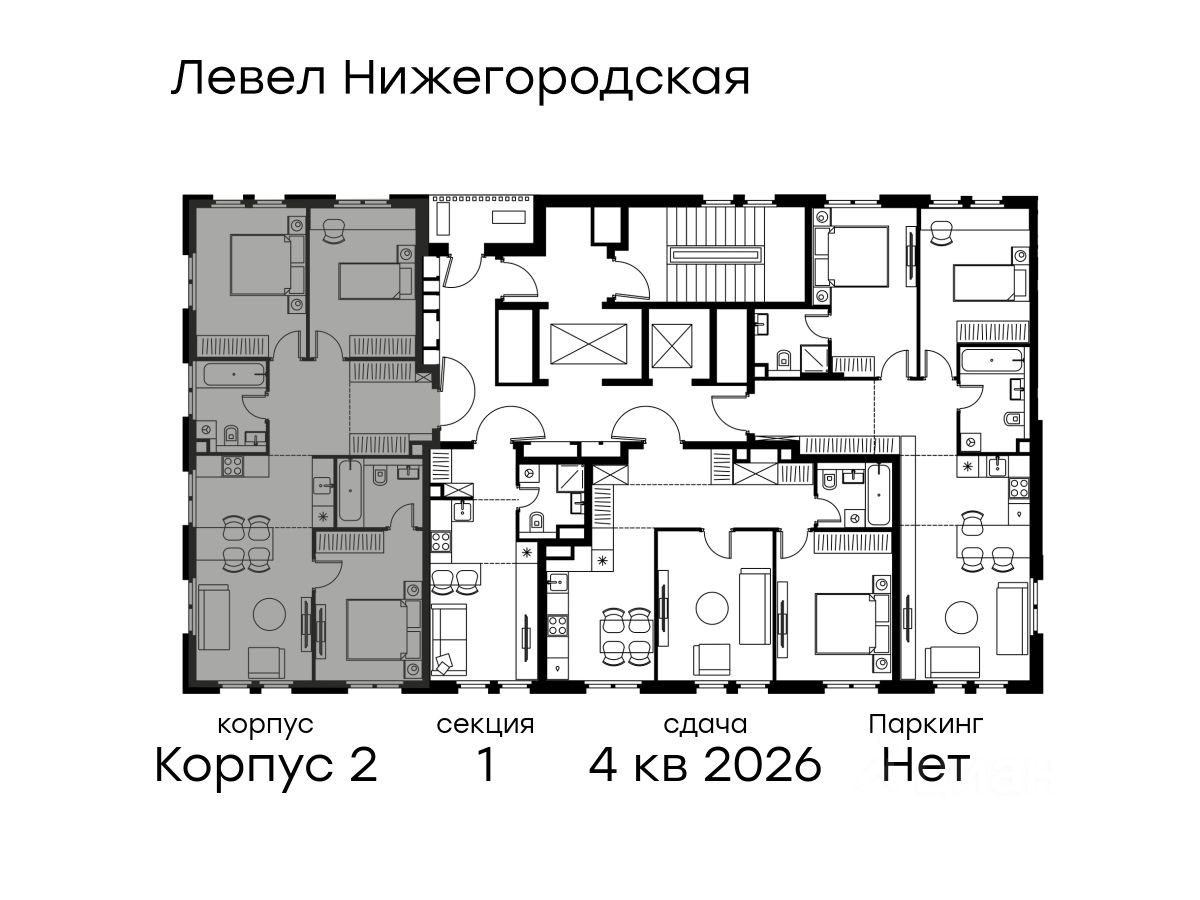 4-к, Левел Нижегородская ЖК, 2