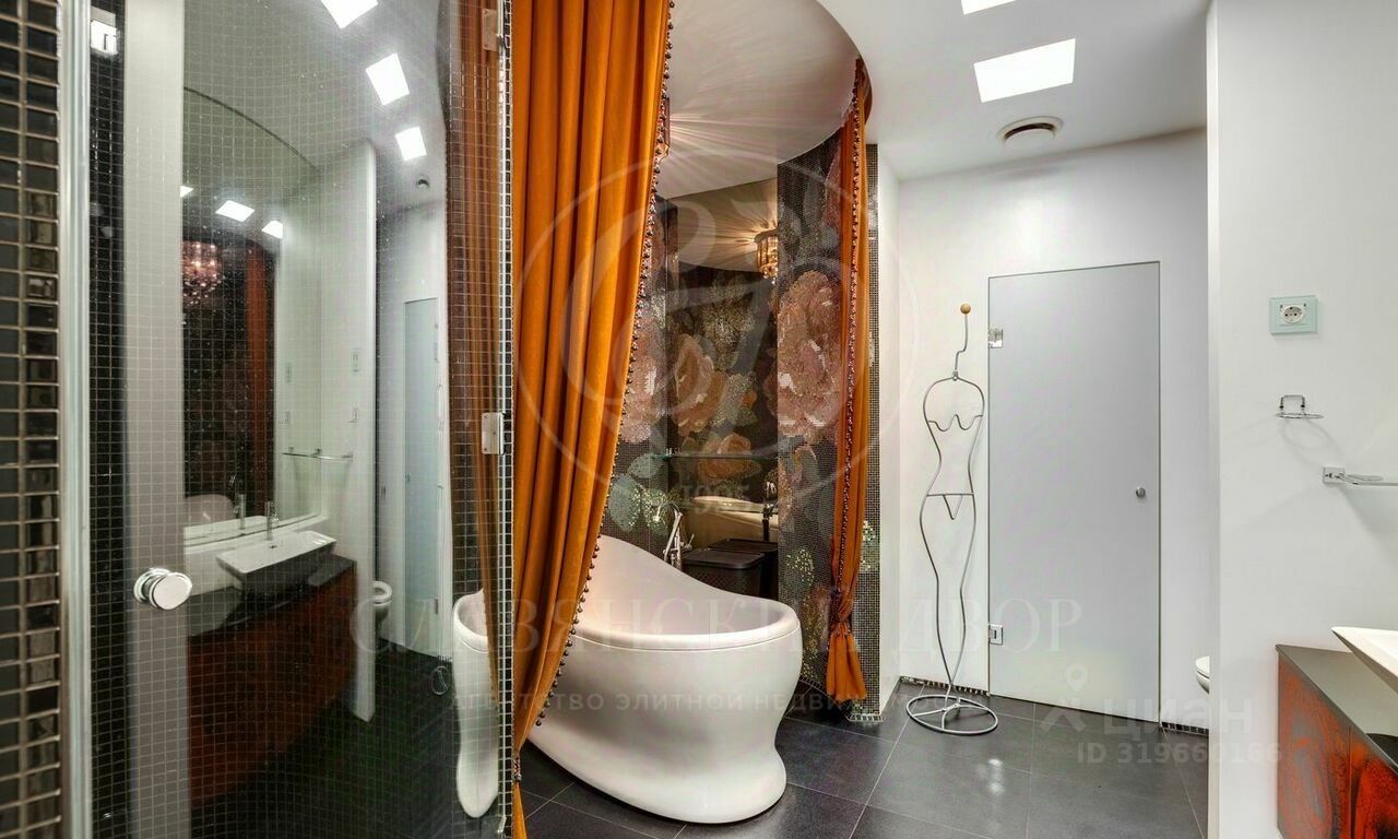 Лот 59190. Оксана Мартынова. На продажу предлагается уникальная семейная резиденция 443,4 кв.м в малоквартирном клубном доме класса De Luxe ''Дворянское гнездо''. Резиденция состоит из двух блоков, первый: просторная гостиная с дровяным камином с панорамными окнами, кухня-столовая, мастер-блок, состоящий из спальни, гардеробной, санузла с окном, душевой, постирочной, кабинета с камином с зоной для отдыха, спальня со своим с/у, просторный холл с гостевым с/у, второй: кухня-гостиная, 2 спальни, спальня с гардеробной с окном, 2 с/у, холл с гостевым с/у. В квартире выполнен эксклюзивный дизайнерский ремонт в классическом стиле. Квартира была отмечена в дизайнерских журналах как проект года. Большое количество панорамных окон, виды в тихий двор и на высотку МИД. Есть 3 машино-места в подземном паркинге и 2 кладовых помещения. Территория дома огорожена, находится под охраной и видеонаблюдением. В доме имеется внутренний двор с фонтаном в итальянском стиле с мраморными колоннами и мозаичным панно. В доме расположен бассейн с зоной для отдыха, сауна, тренажерный зал, комната для танцев, комната для переговоров. Подземный паркинг на 30 машиномест. Бонус партнерам 50%. Есть презентации в pdf на русском или английском для партнеров. Член ассоциации агентств элитной недвижимости AREA.