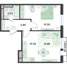 Продаётся 1-комнатная квартира в строящемся доме (Театральный, к2), срок сдачи: II-кв. 2026, общей площадью 48.5 кв.м., на 2 этаже. Бутик-квартал ''G3 Театральный''