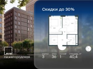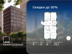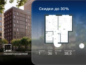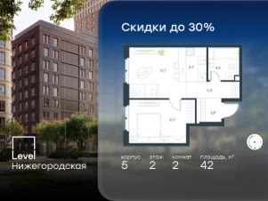 Цена указана с учётом скидки при 100%-й оплате, несубсидированной ипотеке, рассрочке (кроме программы ''Рассрочка 0%''). В активно развивающемся районе на юго-востоке столицы продается 2-комнатная квартира площадью 46,7 кв.м без отделки.. Квартира расположена на 33 этаже 45-этажного этажного корпуса 1 в жилом комплексе комфорт-класса Level Нижегородская (компания Level Group/Левел групп). Отличная транспортная доступность- 10 мин. пешком до станции метро, МЦД-4, БКЛ и МЦК ''Нижегородская'',- 13 мин. пешком до станций метро ''Андроновка'' и ''Перово'',- 10 мин. на авто до ТТК,- 14 мин. на авто до Садового кольца. БлагоустройствоБлагоустроенная территория комплекса делится на внешнюю и внутреннюю. Внутренняя часть - это закрытый двор 0,9 га, где обустраиваются детские площадки для разных возрастных групп, беседки для отдыха и работы, несколько спортивных зон, включая воркаут-зоны и лужайку для бадминтона. Здесь же появится ухоженный луг с прогулочными маршрутами.Рядом с жилым комплексом будет создан ландшафтный парк площадью 2,4 га. В парке будут высажены высокие деревья, луговые травы и кустарники, благоустроены лаунж-зоны у пруда, дорожки для бега и прогулок. В центре парка предусмотрена событийная площадь, рядом расположатся дополнительные спортивные и детские площадки, а также зона для выгула домашних питомцев. Внутренняя инфраструктураДома жилого комплекса будут оснащены коммерческими помещениями, где откроются все необходимые сервисы: магазины, аптеки, салоны красоты, кофейни, службы доставки и многое другое. Комфорт - это когда всё рядом.Кроме того, на территории Level Нижегородская предусмотрен подземный отапливаемый паркинг. Этап 1 включает 335 машино-мест и 143 кладовых помещения для хранения сезонных вещей. Технологии и безопасностьНа территории всех общественных зон постоянно ведется видеонаблюдение и предусмотрен высокоскоростной Wi-Fi. Подъезды, паркинг и внутренний двор оснащены системой контроля доступа. Для удобства жителей создано мобильное приложение, позволяющее связаться с управляющей компанией, осуществлять удаленное управление видеодомофоном или просмотреть изображение отдельных видеокамер по заявке.Для безопасного перемещения по этажам и комфортного спуска в паркинг будут установлены современные лифты от компании BLT Brilliant Elevator. Скорость лифтов - 1,6 - 2,5 м/с. Особенности- Архитектура от экспертов из бюро ARCH(E)TYPE,- Разноуровневая застройка - от секций средней этажности до высоток в 45 этажей (этап 1),- Окна шириной до 2,2 метров (этап1) с видами на Останкинскую башню, Измайловский парк, ''Москва-Сити'' и Кусковский лесопарк,- Лобби с окнами в пол и потолками от 3,4 метров, оснащенные консьерж-сервисом,- Более 35 видов планировок, включая редкие форматы.Артикул 1-379.