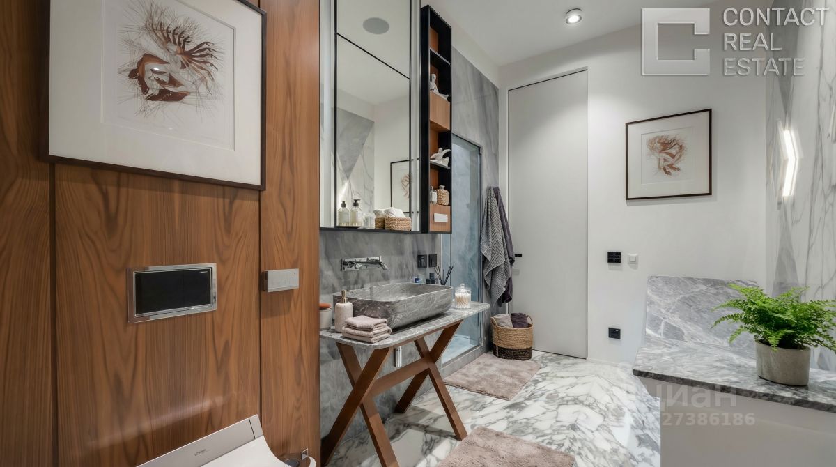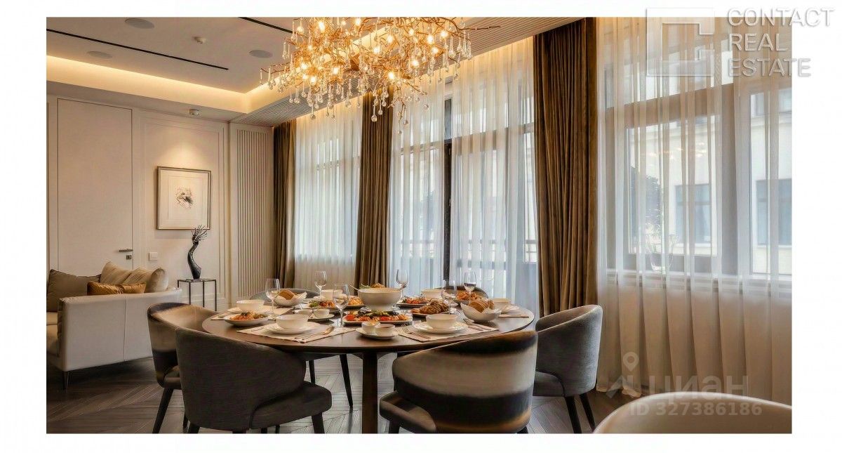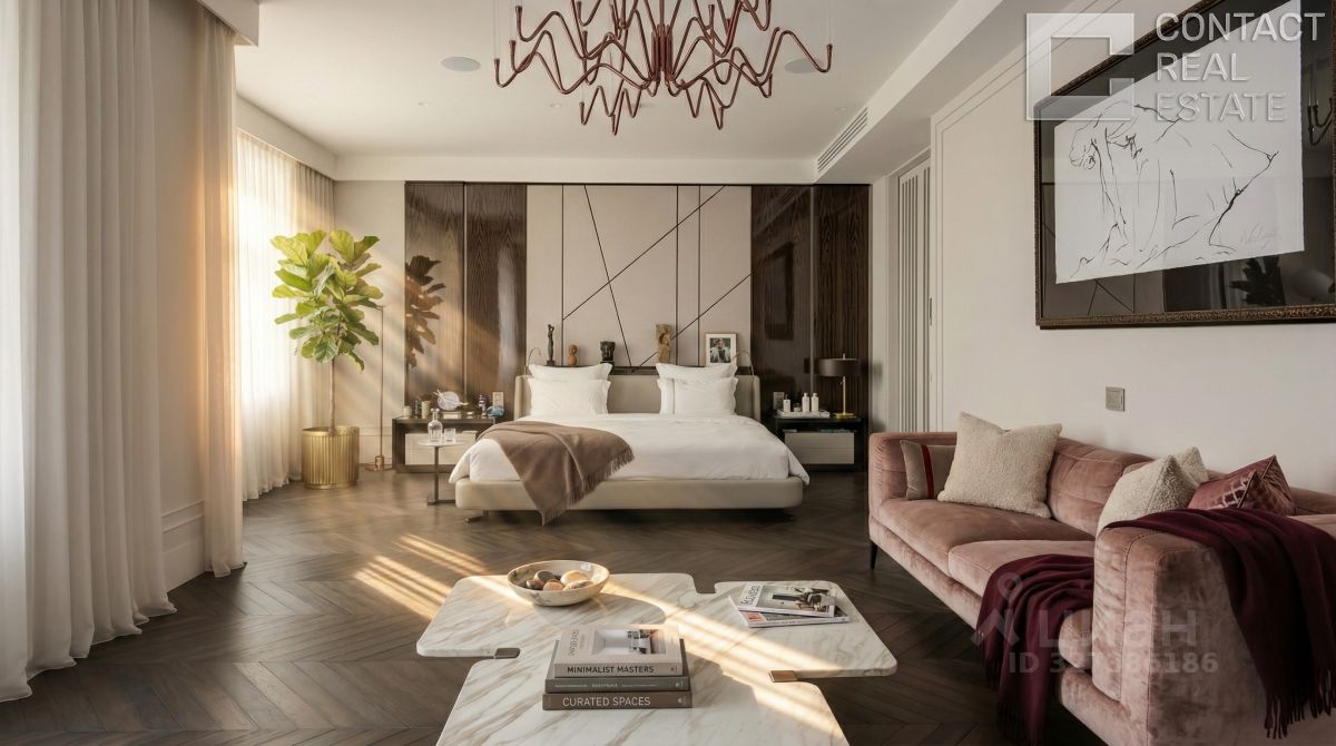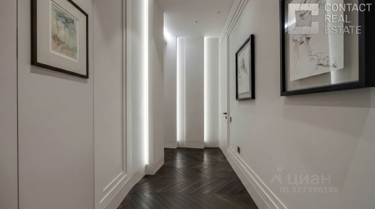 Роскошные апартаменты на пятом этаже клуба ''У Патриарших'' Предлагается эксклюзивное пространство площадью 350 м² с четырьмя спальнями, расположенное на пятом этаже семиэтажного клубного дома ''У Патриарших'', всего в 9 минутах пешком от метро ''Пушкинская''. Это идеальный выбор для ценителей приватности, эстетики и высокого уровня жизни в центре Москвы. Интерьер и комфорт Апартаменты оформлены в нейтральной спокойной палитре с использованием благородных материалов — мрамора, оникса и травертина. Потолки высотой 3,2 м и панорамные окна ''в пол'' визуально расширяют пространство и наполняют его светом. Европейская мебель и техника создают уют и функциональность. Инновационная система ''умный дом'' позволяет управлять освещением, климатом и безопасностью дистанционно, а многоступенчатая фильтрация воздуха и воды обеспечивает максимальный комфорт и здоровье. Планировка и функции - Парадная прихожая с большой гардеробной и санузлом - Полностью оборудованная кухня - Просторная гостиная площадью 74 м² - Четыре мастер-спальни с ванными комнатами и гардеробными - Фитнес-зал с тренажёрами, душевой и хаммамом - Кабинет-библиотека - Блок для персонала с отдельной технической кухней и постирочной - Три балкона Также доступно приобретение двух машино-мест в подземном паркинге, способных вместить три автомобиля. О доме Клубный дом в стиле ар-деко — это 7 этажей, фасад из натурального камня и витражи, рассчитанный на 25 семей. Входная зона оборудована лобби с зоной отдыха и консьерж-сервисом. На втором этаже действует ''Студия ТРИТЭ'' Никиты Михалкова, придающая дому творческую атмосферу. Все резиденции имеют панорамные окна с видом на тихий внутренний двор. Вечерами фасад подсвечивается, превращаясь в настоящий арт-объект. Высокий уровень приватности, безопасности и стиль жизни в делюкс-формате — здесь сочетается всё для комфортного проживания в центре столицы. Локация Жить здесь — значит находиться всего в 2 км от Кремля и в 3 минутах пешком от Патриарших прудов — популярного места для прогулок, отдыха и встреч в лучших ресторанах. Рядом сад ''Аквариум'', Тверская улица с магазинами и развлечениями, фитнес-клуб World Class и престижная школа 2123. За 8 минут можно дойти до Новопушкинского сквера, а за 10 — до Садового кольца, что обеспечивает удобное и быстрое перемещение по городу. Идеальное сочетание уединённости, комфорта и столичной жизни — апартаменты ''У Патриарших'' создают новую планку для элитного жилья в Москве. [Лот #24827]