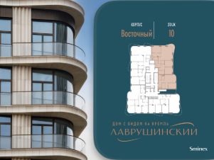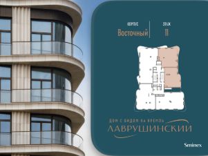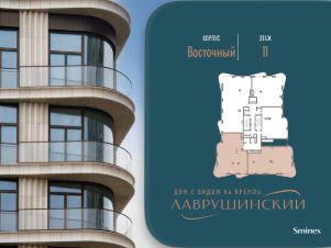 Просторная светлая квартира площадью 128 кв. м. Кухня-гостиная обращена окнами в сторону Кремля, а панорамное остекление, моллированное окно и открытый балкон улучшают видовые характеристики квартиры. Продуманная планировка позволяет разместить две отдалённые друг от друга спальни с отдельными санузлами и гардеробными. Из комнат видны тихий приватный двор-парк с ландшафтным дизайном и исторический особняк Демидова. Окна квартиры выходят на две стороны.''Лаврушинский'' - бескомпромиссный дом с лучшими видами на Кремль. Благодаря расположению всего в одном километре от Кремля, своей высоте и малоэтажной окружающей застройке, из квартир открываются поразительные прямые виды на главные достопримечательности центра Москвы, включая храм Христа Спасителя и собор Василия Блаженного. Расположение в глубине квартала, посередине парка, дает удивительное для центра ощущение тишины и простора.На закрытой территории находится самый большой на элитном рынке собственный ландшафтный парк площадью 1,4 га с фонтаном, ручьём, зонами для воркаута и тихого отдыха. KIDS LAB: развивающая детская площадка на улице и игровая комната в помещении. FIT LAB: фитнес-клуб с 25-метровым бассейном, beauty room, доступные только для жителей.В проекте уникальный выбор квартир с просторными балконами, пентхаусов с террасами, бассейнами и каминами, максимальными видовыми характеристиками, а также роскошных вилл. Всего - 153 квартиры и 101 продуманное планировочное решение. Высота потолков составляет от 3,5 до 8,25 м. В доме предусмотрен 2х-уровневый паркинг на 279 машино-места.В доме предусмотрен полный комплекс систем комфорта, включающий приточно-вытяжную вентиляцию с тонкой фильтрацией с принципом забора воздуха с высоты 50 метров для повышения продолжительности жизни, отдельный сервисный лифт для обслуживающего персонала и другие современные системы.