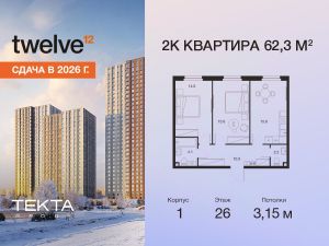 Рассрочка 0% с платежом от 120 000 ? в месяц. Сдача уже в 2026 году 1-комн. квартира в ЖК ''Twelve'' на 10 этаже в 34 этажном здании Корпус 1. Общая площадь: 38 кв.м., жилая: 12.80 кв.м. Высота потолков 3.00 м. ЖК Twelve от застройщика Tekta Group — это новый уровень жизни в районе Нагорный в 3-х минутах от станции метро. Проект представляет собой воплощение современной концепции комфортной жизни, где функциональность органично сочетается с эстетикой. Архитектура Twelve создает атмосферу, вдохновляющую на успех и располагающую к позитивным эмоциям. Дом, в котором каждый день будет наполнен уютом, а не рутинной работой и дорожными пробками. Twelve предлагает своим жильцам продуманные планировки, возможность объединения квартир, а также увидеть красоту города через угловое остекление увеличенных окон. Особое внимание уделено комфорту жителей: благоустроенная территория, зеленые насаждения, детские площадки, парковка. ЖК Twelve — это больше, чем просто жилье: это атмосфера умиротворенности, комфорта и гармонии.