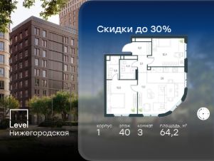 2-к, Левел Нижегородская ЖК, 3 Показать на карте
