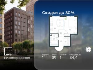 Цена указана с учётом скидки при 100%-й оплате, несубсидированной ипотеке, рассрочке (кроме программы ''Рассрочка 0%''). В активно развивающемся районе на юго-востоке столицы продается 2-комнатная квартира площадью 48,8 кв.м без отделки.. Квартира расположена на 31 этаже 37-этажного этажного корпуса 3 в жилом комплексе комфорт-класса Level Нижегородская (компания Level Group/Левел групп). Отличная транспортная доступность- 10 мин. пешком до станции метро, МЦД-4, БКЛ и МЦК ''Нижегородская'',- 13 мин. пешком до станций метро ''Андроновка'' и ''Перово'',- 10 мин. на авто до ТТК,- 14 мин. на авто до Садового кольца. БлагоустройствоБлагоустроенная территория комплекса делится на внешнюю и внутреннюю. Внутренняя часть - это закрытый двор 0,9 га, где обустраиваются детские площадки для разных возрастных групп, беседки для отдыха и работы, несколько спортивных зон, включая воркаут-зоны и лужайку для бадминтона. Здесь же появится ухоженный луг с прогулочными маршрутами.Рядом с жилым комплексом будет создан ландшафтный парк площадью 2,4 га. В парке будут высажены высокие деревья, луговые травы и кустарники, благоустроены лаунж-зоны у пруда, дорожки для бега и прогулок. В центре парка предусмотрена событийная площадь, рядом расположатся дополнительные спортивные и детские площадки, а также зона для выгула домашних питомцев. Внутренняя инфраструктураДома жилого комплекса будут оснащены коммерческими помещениями, где откроются все необходимые сервисы: магазины, аптеки, салоны красоты, кофейни, службы доставки и многое другое. Комфорт - это когда всё рядом.Кроме того, на территории Level Нижегородская предусмотрен подземный отапливаемый паркинг. Этап 1 включает 335 машино-мест и 143 кладовых помещения для хранения сезонных вещей. Технологии и безопасностьНа территории всех общественных зон постоянно ведется видеонаблюдение и предусмотрен высокоскоростной Wi-Fi. Подъезды, паркинг и внутренний двор оснащены системой контроля доступа. Для удобства жителей создано мобильное приложение, позволяющее связаться с управляющей компанией, осуществлять удаленное управление видеодомофоном или просмотреть изображение отдельных видеокамер по заявке.Для безопасного перемещения по этажам и комфортного спуска в паркинг будут установлены современные лифты от компании BLT Brilliant Elevator. Скорость лифтов - 1,6 - 2,5 м/с. Особенности- Архитектура от экспертов из бюро ARCH(E)TYPE,- Разноуровневая застройка - от секций средней этажности до высоток в 45 этажей (этап 1),- Окна шириной до 2,2 метров (этап1) с видами на Останкинскую башню, Измайловский парк, ''Москва-Сити'' и Кусковский лесопарк,- Лобби с окнами в пол и потолками от 3,4 метров, оснащенные консьерж-сервисом,- Более 35 видов планировок, включая редкие форматы.Артикул 3-360.
