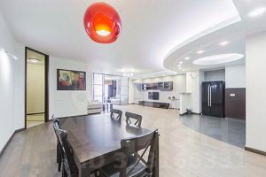 ЖК Корона-Эйр. Предлагается стильная 4-х комнатная квартира с дизайнерским ремонтом. Гостиная зона совмещена с обеденной, две спальни, кабинет, ванная комната (ванна, душевая кабина, сауна), гостевой санузел с душевой кабиной, просторная прихожая, три гардеробные, постирочная, встроенные шкафы. В санузлах установлена качественная сантехника. Квартира полностью меблирована. Квартира оборудована приточно-вытяжной вентиляцией и системой кондиционирования. Из окон открываются красивые виды на храм. Имеется машиноместо в подземном паркинге за дополнительную плату. Придомовая территория комплекса с ландшафтным дизайном, с собственным озером и зоопарком, детскими и спортивными площадками, прогулочными зонами, местами отдыха с беседками и цветниками. Собственная инфраструктура: фитнес-центр с бассейном, детский клуб, магазины, рестораны, салоны красоты. Охрана территории, консьерж, видеонаблюдение. Один собственник. В собственности более 5 лет.