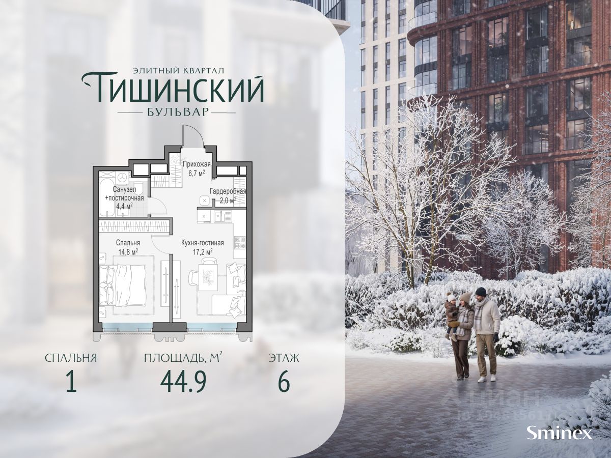 В продаже 2-комнатная квартира квартира в элитном квартале ''Тишинский бульвар''. Общая площадь квартиры - 95.60 кв.м. Этаж 6 из 7. Корпус К5С3. ''Тишинский бульвар'' - тихий зелёный элитный квартал на Тишинке, в престижном и комфортном районе центра Москвы. В нём создан уникальный для элитного дома прогулочный бульвар в своём огромном парке 1,9 га. В парке оборудованы зоны для активного и тихого отдыха, крытые галереи, приватные зелёные комнаты, многофункциональная спортивная площадка, воркаут-зона, детская площадка, сухой фонтан, ручей. В пешей доступности Римско-католический кафедральный собор. Всего в полутора километрах от квартала находятся Патриаршие пруды - излюбленное место для летних прогулок, воскресных бранчей и романтических ужинов. Белая площадь расположена ещё ближе - на расстоянии 1,2 километра. Это точка концентрации деловой жизни и модных ресторанов. В ''Тишинский бульваре'' только для жителей и их гостей создан уникальный для элитного дома прогулочный бульвар в собственном огромном парке площадью 2,1 га, который занимает 70% территории квартала. Бульвар проходит через весь квартал и объединяет в общее пространство три двора: Кленовый, Рябиновый и Ивовый. В парке созданы крытые галереи и приватные зелёные комнаты для отдыха и медитаций в любую погоду. Насыщенное озеленение многолетними растениями с разными периодами цветения сохраняет территорию квартала красивой круглый год. В квартале насыщенная инфраструктура только для жителей, включая Clubhouse. Здесь оборудованы пространства для здорового образа жизни по стандарту FIT LAB: в парке - многофункциональная спортивная площадка, воркаут-зона, место для занятий йогой и медитации, бесплатный фитнес-клуб с бассейном. Для маленьких жителей доступны детская площадка и игровая комната по стандарту KIDS LAB. Дома оснащены самыми полными и лучшими системами.