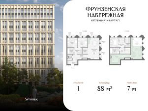 Комфортная квартира с пятью балконами и двумя мастер-спальнями на разных этажах. Площадь первого этажа 88 метров,а благодаря высоким потолкам (7 метров) можно возвести второй этаж.''Фрунзенская набережная'' - единственный элитный клубный квартал на престижной и желанной Фрунзенской набережной, где нет и не появится новых домов такого класса. Для его жителей создан собственный просторный витражный парк площадью 3,1 гектара, где царит атмосфера загородной тишины и безмятежности. Это самый большой в элитном классе парк - он занимает 70% всей территории. Клубные дома скрыты от посторонних глаз и шума мегаполиса обильной зеленью и окружены парадной сталинской застройкой.Расположение идеально подходит для любителей прогулок и здорового образа жизни. Для жителей доступен прямой выход к Москве-реке, за которой раскинулись парк Горького, Нескучный сад и Воробьёвы горы - всего 219 гектаров природных парков. На набережной маршруты для бега, пеших и велопрогулок. Спортивный комплекс ''Лужники'' расположен в 2 километрах.В уникальном клубном квартале создана беспрецедентно масштабная среда для жизни, деловых и личных знакомств, воспитания и игр детей среди равных по статусу соседей в культовом месте и окружении. На его территории сформирована впечатляющая по масштабам и насыщенности инфраструктура только для жителей общей площадью 2700 кв. м.Для максимального комфорта территория своего парка разделена на зоны активного и спокойного отдыха.На свежем воздухе для маленьких жителей разных возрастов оборудована самая большая в элитном классе детская игровая площадка (600 кв. м) по стандарту Kids Lab. Для активного отдыха создана уникальная среди элитных домов многофункциональная площадка (368 кв. м) для футбола, бадминтона, баскетбола, волейбола и других командных видов спорта, также предусмотрена зона для воркаута площадью более 100 кв. м.Для спокойного досуга на природе в своём парке созданы пейзажный пруд с витражным навесом и террасой, тихие зоны у воды, оазисы комфорта - зелёные комнаты с мягкой мебелью и шезлонгами. Парк располагает к прогулкам, в нём много маршрутов вокруг арт-объектов, есть пряный сад с ароматными травами. Здесь можно устроить семейный пикник, почитать книгу в тени деревьев и забыть о том, что живёте в центре города, подарив себе полноценный отдых на природе.В клубном квартале только для жителей создан беспрецедентно большой в элит-классе инфраструктурный центр - Clubhouse. Он расположен в отдельном здании и формирует атмосферу закрытого камерного клуба для своих, где каждый найдёт себе занятие по душе. В Clubhouse комплексная и разнообразная инфраструктура, которая создана по фирменным стандартам Sminex и объединяет лучшие возможности для общения и отдыха, воспитания и развития детей, поддержания здоровья и занятий спортом.Для встреч, отдыха и общения жителей в Clubhouse создана клубная гостиная площадью более 170 кв. м с террасой на свежем воздухе по стандарту Friends Lab. Элегантный дизайн лаундж-зоны располагает как к общен