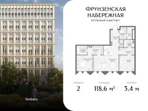 Просторная квартира с тремя продуманными мастер-спальнями и панорамными окнами с видами на живописные рассветы.''Фрунзенская набережная'' - единственный элитный клубный квартал на престижной и желанной Фрунзенской набережной, где нет и не появится новых домов такого класса. Для его жителей создан собственный просторный витражный парк площадью 3,1 гектара, где царит атмосфера загородной тишины и безмятежности. Это самый большой в элитном классе парк - он занимает 70% всей территории. Клубные дома скрыты от посторонних глаз и шума мегаполиса обильной зеленью и окружены парадной сталинской застройкой.Расположение идеально подходит для любителей прогулок и здорового образа жизни. Для жителей доступен прямой выход к Москве-реке, за которой раскинулись парк Горького, Нескучный сад и Воробьёвы горы - всего 219 гектаров природных парков. На набережной маршруты для бега, пеших и велопрогулок. Спортивный комплекс ''Лужники'' расположен в 2 километрах.В уникальном клубном квартале создана беспрецедентно масштабная среда для жизни, деловых и личных знакомств, воспитания и игр детей среди равных по статусу соседей в культовом месте и окружении. На его территории сформирована впечатляющая по масштабам и насыщенности инфраструктура только для жителей общей площадью 2700 кв. м.Для максимального комфорта территория своего парка разделена на зоны активного и спокойного отдыха.На свежем воздухе для маленьких жителей разных возрастов оборудована самая большая в элитном классе детская игровая площадка (600 кв. м) по стандарту Kids Lab. Для активного отдыха создана уникальная среди элитных домов многофункциональная площадка (368 кв. м) для футбола, бадминтона, баскетбола, волейбола и других командных видов спорта, также предусмотрена зона для воркаута площадью более 100 кв. м.Для спокойного досуга на природе в своём парке созданы пейзажный пруд с витражным навесом и террасой, тихие зоны у воды, оазисы комфорта - зелёные комнаты с мягкой мебелью и шезлонгами. Парк располагает к прогулкам, в нём много маршрутов вокруг арт-объектов, есть пряный сад с ароматными травами. Здесь можно устроить семейный пикник, почитать книгу в тени деревьев и забыть о том, что живёте в центре города, подарив себе полноценный отдых на природе.В клубном квартале только для жителей создан беспрецедентно большой в элит-классе инфраструктурный центр - Clubhouse. Он расположен в отдельном здании и формирует атмосферу закрытого камерного клуба для своих, где каждый найдёт себе занятие по душе. В Clubhouse комплексная и разнообразная инфраструктура, которая создана по фирменным стандартам Sminex и объединяет лучшие возможности для общения и отдыха, воспитания и развития детей, поддержания здоровья и занятий спортом.Для встреч, отдыха и общения жителей в Clubhouse создана клубная гостиная площадью более 170 кв. м с террасой на свежем воздухе по стандарту Friends Lab. Элегантный дизайн лаундж-зоны располагает как к общению, так и к уединённому отдыху. Здесь комфортно поработать, посидеть