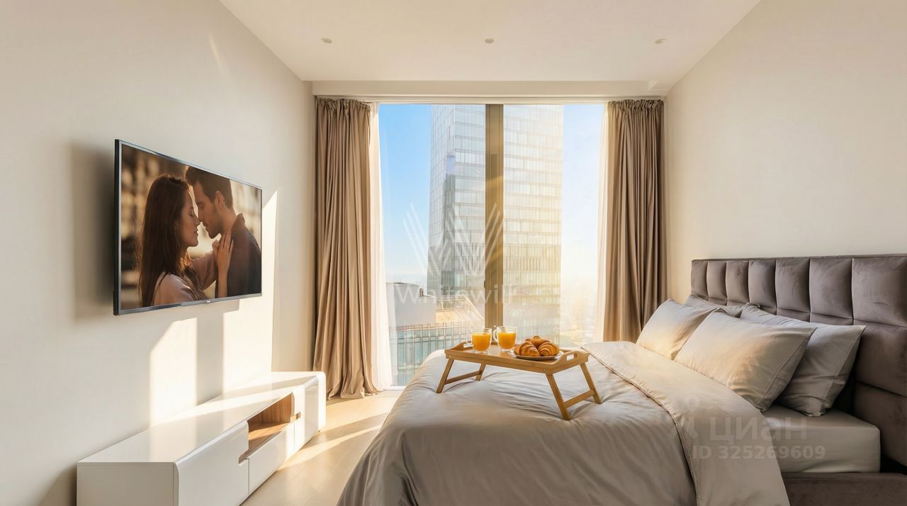 Видовые апартаменты с одной спальней общей площадью 88 м² в комплексе небоскрёбов премиум-класса Neva Towers. Апартаменты расположены на пятьдесят восьмом этаже, откуда открываются захватывающие виды на столицу. Выполнена отделка в светлом стиле, на полу паркетная доска, стены выровнены и окрашены. Вся техника производителя SMEG. Планировка включает кухню-гостиную, спальню, ванную комнату и прихожую. Дополнительно предусмотрено много мест для хранения вещей. Благодаря панорамному остеклению пространство наполнено естественным светом и теплом. Главное о доме. Neva Towers — две башни в Москва-Сити с лобби на высоте атриума и панорамами делового центра. На стилобате обустроили приватный парк для жителей: газоны, шезлонги, дорожки и воркаут-зона — удобно выйти на солнце прямо из корпуса. В галерее у основания работают кафе и рестораны, рядом — повседневные сервисы. Внутри — клубные пространства и Crocus Fitness с бассейном под открытым небом, джакузи и спа-зоной. Вечером архитектурная подсветка подчёркивает силуэт башен, и двор превращается в тихую террасу над городом. Для автомобилей предусмотрели многоуровневый паркинг с лифтовым доступом к лобби. Главное о локации. Жизнь здесь сосредоточена в самом сердце Москва-Сити. Утро можно начать с прогулки по набережной или короткой дороги в детский сад 2112 — всего 10 минут пешком. Старшие дети учатся в ''Школе будущего'' 2030, школе 1726 или английской школе 1232. Днём удобно заглянуть в ''Афимолл'' за покупками, в супермаркет ''Перекрёсток'' или на тренировку в фитнес-центр World Class. Вечером жители выбирают рестораны и кафе торговой галереи или концерты и события в деловом квартале. Метро ''Международная'' и аэроэкспресс в аэропорт Домодедово находятся в трёх минутах ходьбы, а выезд на ТТК и Звенигородское шоссе делает передвижения быстрыми. Комментарий эксперта. Меня зовут Егор Мясоедов — брокер компании Whitewill. Я отвечаю за продажу этого лота. Свяжитесь со мной, чтобы получить расширенную презентацию, больше фотографий или договориться о просмотре. Могу провести экскурсию по локации и познакомить вас с этим домом. ID 309 854.