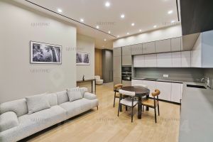 ОПИСАНИЕ КВАРТИРЫ 4 ЭТАЖ, 200 м²В квартире выполнена премиальная дизайнерская отделка сиспользованием высококачественных и натуральных материалов,таких как: натуральный мрамор, шпон дуба, сатинированная сталь,декоративная штукатурка.ПЛАНИРОВОЧНОЕ РЕШЕНИЕ:- Кухня гостиная с обеденной зоной (58,32 кв.м),- Мастер спальня со своим санузлом (душевая) и гардеробнойкомнатой (44,23 кв.м),- Мастер спальня со своим санузлом (ванна) и гардеробнойкомнатой (19,43 кв.м),- Спальня со своим санузлом (душевая) (19,7 кв.м),- Кабинет/спальня (14,35 кв.м),- Постирочная (4,03 кв.м),- Гостевой санузел (3,71 кв.м),- Холл, коридор (24,25 кв.м).Квартира полностью укомплектована бытовой техникой и мебелью.Техника: Miele, Liebherr,Мебель: Minotti, FlexForm, Poliform, Cattelan ItaliaСантехника: Gessi, Omoikiri, Сleo, Salini.Освещение: Центр свет, Astro lighting, CVL Luminaires, Aromas DelCampo, Foscarini, Vibia, Marset.- двери скрытого монтажа Union,- напольные покрытия (инженерная доска 18 мм, дуб, мрамор),- ковры Bo Concept,- текстиль (Итальянские ткани, индивидуальный пошив),- электрофурнитура Jung.ТЕХНИЧЕСКИЕ ХАРАКТЕРИСТИКИ- индивидуальное кондиционирование Daikin,- форсуночная система увлажнения UniverseDIY,- общедомовая система приточно-вытяжной вентиляции,- система защиты от протечек Neptun,- шумоизоляция (полы, стены, потолок).О КОМПЛЕКСЕ Жилой комплекс премиум-класса в Хамовниках, рядом с парком имени Мандельштама. Состоитиз пяти корпусов переменной этажности, два из которых с пентхаусами.Внутри комплекса есть СПА-центр и фитнес-клуб с бассейном, английский мужской клуб, детская комната, клубный ресторан с доставкой еды, рестораны Москвич и Black Market, музей ретроавтомобилей Автовилль.