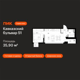 Продаётся 1-комн. квартира площадью 35,9 кв.м на 8 этаже 23 этажного дома (Корпус 3.2, Секция 2) проекта ПИК Кавказский бульвар 51. Светлый просторный подъезд на уровне земли, функциональная планировка, большие окна, c отделкой. ''Кавказский бульвар 51'' — современный жилой квартал в районе Царицыно. Проект частично реализован. ''Кавказский бульвар 51'' находится в районе Царицыно, недалеко от одноимённого музея-заповедника. До метро ''Кантемировская'' — 17 минут пешком. За 20 можно дойти до станции ''Чертаново''. В 10 минутах на машине — МКАД, в 11 минутах — Варшавское шоссе, а в 16 минутах — ТТК. В проекте жилые дома высотой от 5 до 33 этажей, детский сад и школа. На первых этажах доступны магазины, кафе, салоны красоты и другие сервисы — чтобы купить кофе и свежий хлеб к завтраку, можно просто спуститься на лифте. В уютных дворах-парках есть места для отдыха и детские площадки. Для прогулок на свежем воздухе мы построим для жителей широкий пешеходный бульвар. В районе вокруг ''Кавказского бульвара 51'' есть всё для комфортной жизни: детские сады, школы, поликлиники, магазины и торговые центры. Девять минут на машине — и вы у музея-заповедника ''Царицыно'', где можно гулять среди исторических построек, лежать на траве под тенью деревьев или заниматься спортом на специальных площадках. Есть парки и поближе: до Аршиновского можно дойти за 8 минут, а до парка ''Сосенки'' — за 13 минут. Артикул 1009613 (Застройщик АО ''СПЕЦИАЛИЗИРОВАННЫЙ ЗАСТРОЙЩИК ''ТОРГОВЫЙ ДОМ СПУТНИК'')