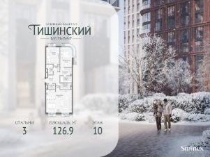В продаже 3-комнатная квартира квартира в элитном квартале ''Тишинский бульвар''.Общая площадь квартиры - 126.90 кв.м. Этаж 10 из 14.Корпус К4С1.''Тишинский бульвар'' - тихий зелёный элитный квартал на Тишинке, в престижном и комфортном районе центра Москвы. В нём создан уникальный для элитного дома прогулочный бульвар в своём огромном парке 1,9 га. В парке оборудованы зоны для активного и тихого отдыха, крытые галереи, приватные зелёные комнаты, многофункциональная спортивная площадка, воркаут-зона, детская площадка, сухой фонтан, ручей.В пешей доступности Римско-католический кафедральный собор. Всего в полутора километрах от квартала находятся Патриаршие пруды - излюбленное место для летних прогулок, воскресных бранчей и романтических ужинов. Белая площадь расположена ещё ближе - на расстоянии 1,2 километра. Это точка концентрации деловой жизни и модных ресторанов.В ''Тишинский бульваре'' только для жителей и их гостей создан уникальный для элитного дома прогулочный бульвар в собственном огромном парке площадью 2,1 га, который занимает 70% территории квартала. Бульвар проходит через весь квартал и объединяет в общее пространство три двора: Кленовый, Рябиновый и Ивовый.В парке созданы крытые галереи и приватные зелёные комнаты для отдыха и медитаций в любую погоду. Насыщенное озеленение многолетними растениями с разными периодами цветения сохраняет территорию квартала красивой круглый год.В квартале насыщенная инфраструктура только для жителей, включая Clubhouse. Здесь оборудованы пространства для здорового образа жизни по стандарту FIT LAB: в парке - многофункциональная спортивная площадка, воркаут-зона, место для занятий йогой и медитации, бесплатный фитнес-клуб с бассейном. Для маленьких жителей доступны детская площадка и игровая комната по стандарту KIDS LAB.Дома оснащены самыми полными и лучшими системами.