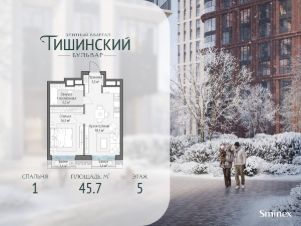В продаже 1-комнатная квартира квартира в элитном квартале ''Тишинский бульвар''.Общая площадь квартиры - 45.70 кв.м. Этаж 5 из 14.Корпус К4С1.''Тишинский бульвар'' - тихий зелёный элитный квартал на Тишинке, в престижном и комфортном районе центра Москвы. В нём создан уникальный для элитного дома прогулочный бульвар в своём огромном парке 1,9 га. В парке оборудованы зоны для активного и тихого отдыха, крытые галереи, приватные зелёные комнаты, многофункциональная спортивная площадка, воркаут-зона, детская площадка, сухой фонтан, ручей.В пешей доступности Римско-католический кафедральный собор. Всего в полутора километрах от квартала находятся Патриаршие пруды - излюбленное место для летних прогулок, воскресных бранчей и романтических ужинов. Белая площадь расположена ещё ближе - на расстоянии 1,2 километра. Это точка концентрации деловой жизни и модных ресторанов.В ''Тишинский бульваре'' только для жителей и их гостей создан уникальный для элитного дома прогулочный бульвар в собственном огромном парке площадью 2,1 га, который занимает 70% территории квартала. Бульвар проходит через весь квартал и объединяет в общее пространство три двора: Кленовый, Рябиновый и Ивовый.В парке созданы крытые галереи и приватные зелёные комнаты для отдыха и медитаций в любую погоду. Насыщенное озеленение многолетними растениями с разными периодами цветения сохраняет территорию квартала красивой круглый год.В квартале насыщенная инфраструктура только для жителей, включая Clubhouse. Здесь оборудованы пространства для здорового образа жизни по стандарту FIT LAB: в парке - многофункциональная спортивная площадка, воркаут-зона, место для занятий йогой и медитации, бесплатный фитнес-клуб с бассейном. Для маленьких жителей доступны детская площадка и игровая комната по стандарту KIDS LAB.Дома оснащены самыми полными и лучшими системами.