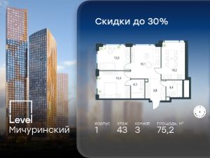 5-к, Левел Мичуринский ЖК, 3 Показать на карте