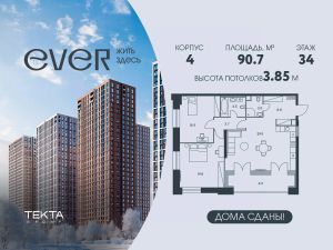 Рассрочка 0% с платежом от 120 000 ? в месяц. 3-комн. квартира в ЖК ''Ever'' на 34 этаже в 34 этажном здании Корпус 4. Общая площадь: 66.6 кв.м., жилая: 48.1 кв.м. Высота потолков 3.85 м. Top Floor — это пространство, которое сочетает в себе уникальный комфорт и элегантность. Увеличенная высота потолков создает ощущение простора и свободы, позволяя свету беспрепятственно заполнять каждый уголок. Здесь вы можете наслаждаться завораживающими панорамными видами на Сити, здание МГУ и Воронцовский парк, которые открываются из больших окон. Каждое утро вы встречаете, глядя на величественные силуэты, которые становятся частью вашего повседневного вдохновения. Город оживает перед вами, и каждый момент наполняется новыми впечатлениями. Утренние лучи солнца отражаются на стеклах, а вечерние огни создают атмосферу магии и уюта. Top Floor — это не просто место для жизни, это возможность наслаждаться атмосферой мегаполиса, оставаясь в уединении. Широкие пространства позволяют вам организовать интерьер по своему вкусу, а высокие потолки придают помещению особую элегантность. Вы можете создавать здесь уютную атмосферу для встреч с друзьями или просто наслаждаться уединением, наблюдая за жизнью города. Это место, где каждый день наполняется новыми красками и возможностями. Top Floor — ваш личный уголок, где царит гармония и комфорт, а виды на Москву становятся фоном для вашей жизни. Жилой комплекс EVER — это гармоничное сочетание динамики мегаполиса и умиротворенности природы. Всего семь минут неспешной прогулки отделяют вас от станции метро ''''Калужская'''', обеспечивая быстрый доступ ко всем преимуществам жизни в Москве. Вернувшись домой, вы попадаете в атмосферу спокойствия и комфорта. Продуманная инфраструктура комплекса включает в себя не только уютные квартиры, но и удобный подземный паркинг, избавляющий вас от хлопот с поиском места для парковки, а также индивидуальные кладовые помещения, где можно хранить все необходимое. В EVER вы найдете идеальное сочетание комфорта и удобства, позволяющее наслаждаться всеми преимуществами жизни в столице, не забывая о важности спокойствия и близости к природе.