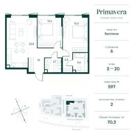 Клубный город на реке Primavera — это современный жилой комплекс премиум-класса, расположенный на первой береговой линии Москвы-реки в экологически чистом районе Покровское-Стрешнево.Под панорамными окнами квартир находится собственный экопарк с продуманной сетью прогулочных дорожек и современными детскими и спортивными площадками. За парком расположена набережная с собственным пляжем и зонами для отдыха.Клубный город на реке Primavera предлагает широкий выбор планировок для различных жизненных сценариев: от просторных однокомнатных квартир до пентхаусов и жилых помещений с террасами и патио. Выберите из 120 вариантов эргономичных планировок стандартного и евроформата.Из каждой квартиры открываются красивые виды на реку с углом обзора в 270 градусов. Дизайнерские лобби предлагают панорамный обзор на благоустроенный двор. Высокие потолки в 6 метров и качественная отделка создают атмосферу, схожую с пятизвездочными отелями.В Primavera есть всё необходимое для комфортной жизни в мегаполисе:•Образование для детей в шаговой доступности: 4 школы, 8 детских садов и развивающие центры с кружками и секциями.•Удобства на расстоянии приятной прогулки: супермаркеты, кафе, рестораны с верандами, салоны красоты, аптеки и многофункциональный центр для шоппинга и развлечений.•Умный дом: автоматизированное бесконтактное управление основными системами доступа и безопасности через мобильное приложение.Клубный город на реке Primavera выгодно сочетает комфорт городской жизни с близостью к природе. Живите в месте, где все создано для вашего удобства!