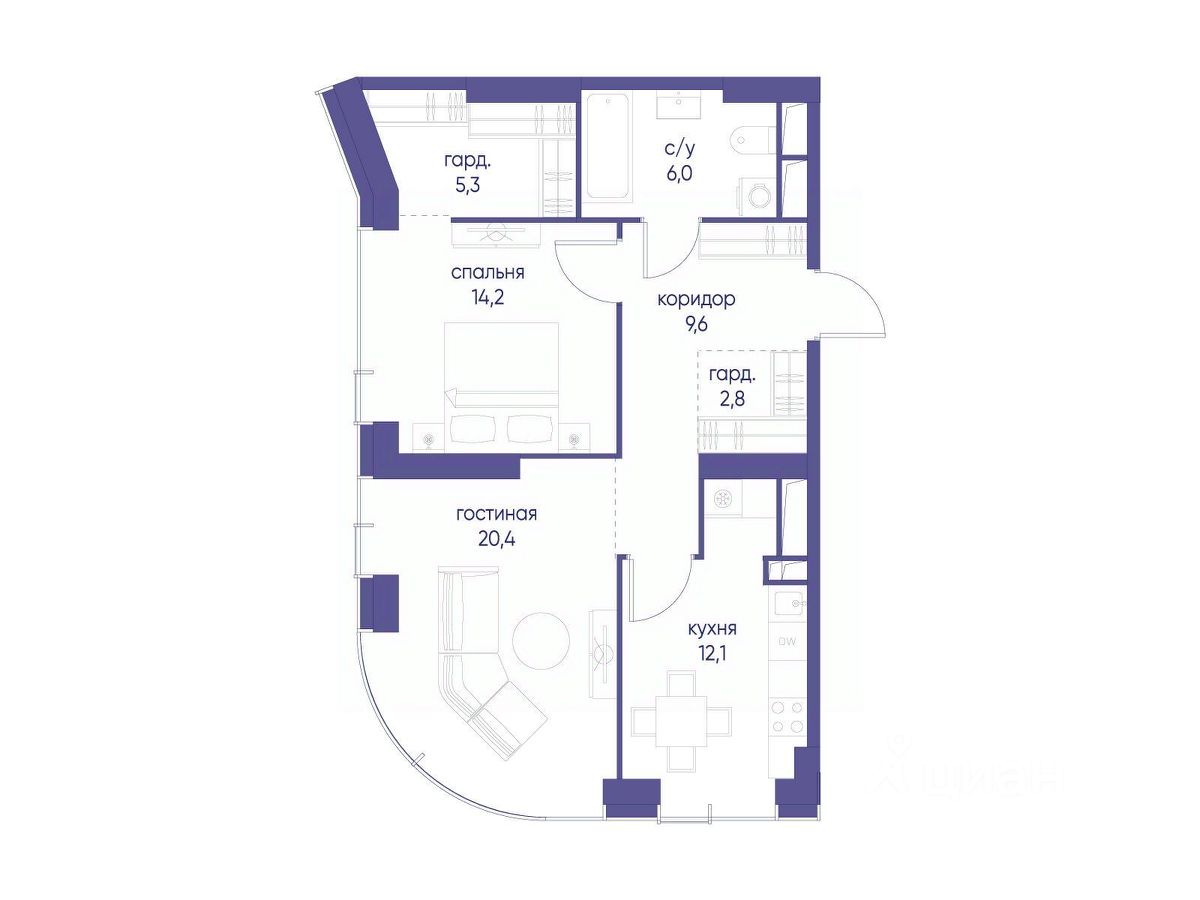 60 м² · Этаж 20 из 24