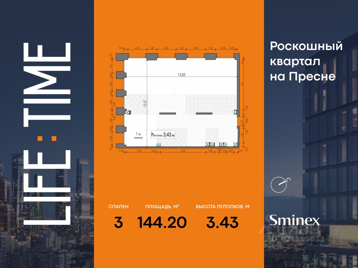 Просторная светлая квартира площадью 105,7 кв. м, обращённая окнами в сторону парка ''Красногвардейские пруды''. Панорамное остекление улучшает видовые характеристики квартиры. Продуманная планировка позволяет разместить приватную спальню с отдельными гардеробными и санузлами, спальню с отдельным гардеробом и просторную кухню-гостиную. Life Time - роскошный современный квартал на Пресне, в наиболее быстро растущем премиальном районе ЦАО. Его насыщенная инфраструктура и выгодное расположение дарят время для жизни. Вы больше не тратите его на дорогу или ожидание, при этом ни в чём себе не отказывая. На территории предусмотрено всё для комфортной жизни: • двор-парк площадью 1,8 гектара с прудом и фонтанами, • Clubhouse - инфраструктурный центр в отдельном здании с исчерпывающими возможностями для спорта, отдыха и досуга только для жителей, • спортивная инфраструктура на улице и в помещении, в том числе бассейн длиной 25 метров, хот-таб, хаммам, сауна, бьюти-зона, • клубная гостиная с террасой, • всё для развития и досуга детей любого возраста, в том числе детский сад и школа. Life Time находится в центре сложившегося премиального района, в окружении многочисленных парков. Удобная транспортная доступность и прямой выезд на Звенигородское шоссе позволяют без проблем добраться до Садового кольца и Москва-Сити. Архитектурный стиль квартала - роскошный минимализм. Дома десятилетиями будут выглядеть современно.