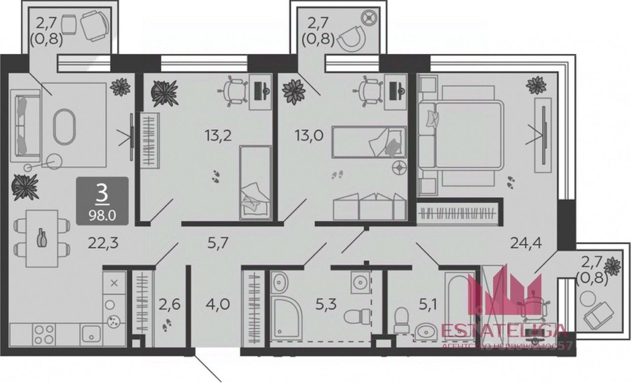 Трехкомнатные