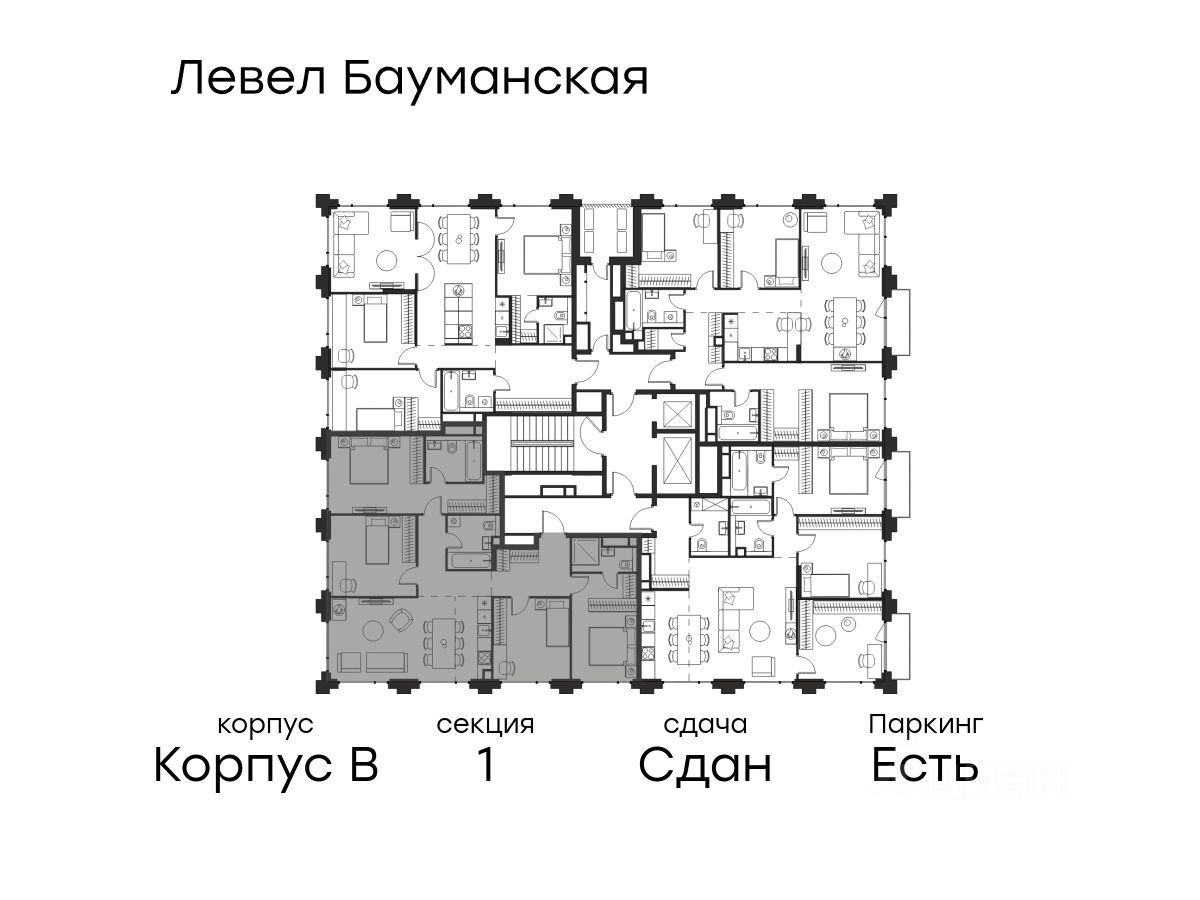 Цена указана с учётом скидки при 100%-й оплате, несубсидированной ипотеке, рассрочке (кроме программы ''Рассрочка 0%''). В Басманном районе (ЦАО) продается 4-комнатная квартира площадью 94.60 кв.м без отделки. Квартира расположена на 17 этаже 17-этажного корпуса '' B'' в жилом комплексе бизнес-класса Левел Бауманская (компания Level Group). Отличная транспортная доступность: - 15 мин. пешком до метро ''Бауманская'' и ''Электрозаводская'', - 4 мин. на авто до ТТК, - 8 мин. на авто до Садового кольца, - 15 мин. на авто до Кремля. Продуманный архитектурный проект: - Архитектура от бюро ARCH(E)TYPE, вдохновленная историей района, - 95% квартир с панорамными видами на набережные, парки и сталинские высотки, - Высокие потолки от 3,02 м до 6,3 м, - Лобби с комфортными лаунж-зонами, - Благоустроенный закрытый двор без машин. Расположение и инфраструктура: Левел Бауманская расположен в престижном Басманном районе (ЦАО). В пешей доступности находится легендарный МГТУ им. Баумана, Британский и Ломоносовский лицеи, а за 10 минут на автомобиле можно доехать до НИУ ВШЭ и других престижных вузов. На территории проекта предусмотрена развитая внутренняя инфраструктура: собственный детский сад и 10 коммерческих помещений на первых этажах домов. Благоустройство: Концепция благоустройства создана в соавторстве с именитым бюро GAFA. На площади 0,35 га расположатся зоны для отдыха, занятий спортом и прогулок. Во дворе для жителей жилого комплекса будет создан коворкинг прямо на свежем воздухе - открытые беседки и Wi-Fi на территории. Атмосферу приватности подчеркнёт обилие растительности - деревья и кустарники займут 50% двора. За счёт большого количества хвойных насаждений территория жилого комплекса будет зелёной круглый год. Инженерия и комфорт: Жители Левел Бауманская не зависят от сезонного отключения горячей воды. Для этого в проекте предусмотрены центральные водонагреватели, обеспечивающие комфорт круглый год. Для безопасности созданы следующие системы контроля доступа: круглосуточное видеонаблюдение всех общественных зон (лобби, двор, лифты, паркинг), вызывные панели у входов на закрытую территорию, видеодомофоны с возможностью управления через мобильное приложение, распознавание автомобильных номеров при въезде/выезде в/из паркинга. По заявке собственнику предоставляется возможность просмотра изображения отдельных видеокамер. Лифты: В жилом комплексе устанавливается лифтовое оборудование Sicher Elevator - одного из ведущих производителей с 20-летним опытом и 40 представительствами по всему миру. Кабины от Sicher Elevator отличаются тихим и плавным ходом, особой износостойкостью и современными технологическими и дизайнерскими решениями. Все лифты имеют прямой доступ в паркинг с жилых этажей. В домах также предусмотрен сервисный лифт. Грузоподъёмность лифтов от 450 до 1000 кг, скорость 1,6 м/с.