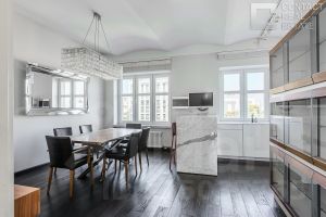 Жилой дом построен по индивидуальному проекту архитектора А.И. Ефимова как жилищный кооператив ''Кремлевский работник'', в котором в разные периоды проживали такие знаменитости, как Валентина Серова, Юрий Любимов, Аркадий Райкин. Дом окружен усадьбами, особняками и памятниками архитектуры, а его удачное расположение в историческом районе Москвы, позволяет жителям пользоваться всей инфраструктурой районов Арбата, Патриарших прудов, Малой и Большой Никитской, Тверского и Никитского бульваров с известными торговыми галереями, бутиками, ресторанами, театрами и музеями.Квартира занимает этаж целиком, а свой уникальный для дома формат приобрела путем объединения трех квартир и проведения полной реновации конструктивных элементов с заменой всех инженерных систем, окон и дверей на современные европейские аналоги, внедрения дополнительных современных систем кондиционирования, систем охраны и безопасности.Планировочное решение квартиры идеально продумано для семьи с детьми, где каждый член семьи будет обеспечен своим индивидуальным пространством, не исключая мест для совместного семейного досуга: кухня-столовая (32,9 м2), гостиная (34,3 м2), мастер-спальная родителей с гардеробной и ванной комнатой (61 м2), детский блок из двух комнат (31,8 и 28,8 м2) и отдельной ванной, домашний кинотеатр (26,2 м2) и библиотека (11,8 м2), два дополнительных гостевых с/у.Благодаря высоким потолкам (3,1 метра), большому количеству окон, выбору цветовой гаммы в оформлении интерьера, квартира получилась невероятно светлой и просторной. Половина окон квартиры выходят в сторону тихого закрытого двора, остальная в сторону не менее тихого Гранатного переулка.Наша компания состоит в ассоциации AREA. [Лот #23342]