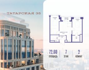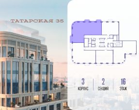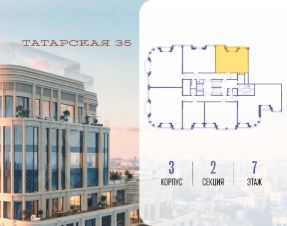 Продается просторная квартира площадью 54.90 м2 в жилом комплексе ТАТАРСКАЯ, 35. Квартира находится в 2 секции корпуса 2. Этаж 8-й из 19.Квартира без чистовой отделки, с просторной кухней 17.30 м2. Жилая площадь 14.80 м2. Высота потолка от 3.50.ТАТАРСКАЯ, 35 - новая архитектурная доминанта Замоскворечья, достопримечательность на фотопанорамах исторического центра Москвы. Элитный дом, созданный для тех, кто умеет смотреть далеко вперед, мыслить масштабно и воплощать собственный сценарий жизни.Вдохновляющие прогулки по променаду набережной, в уютных переулках, в парке ''Зарядье'', в Михайловском саду и Репинском сквере. Наслаждение высоким искусством в Третьяковской галерее, Доме Музыки, театральном музее им. А.А. Бахрушина, театре на Малой Ордынке. За окнами - Кремль, высотка на Котельнической, панорамы Замоскворечья и острова Балчуг, огни Садового кольца.Собственные спорт-румы, детская, репетиторская, бьюти-пространства, деловое пространство с коворкингом, переговорной и сигарной. Собственный трехуровневый фитнесс-центр с бассейном, тренажерным залом, сауной, хаммамом, массажным кабинетом. Площадь двора - 1,8 га, половина территории покрыта деревьями, кустарниками и лужайками.Дом расположен внутри Садового кольца - отсюда в считанные минуты можно добраться до важнейших мест столицы: достопримечательностей и парков, театров и ресторанов, деловых и административных центров. 7 минут до Кремля на автомобиле, 15 минут до Третьяковской галереи и 8 минут до Садового кольца пешком.Планировочные решения и визуализации предварительны, возможны изменения.