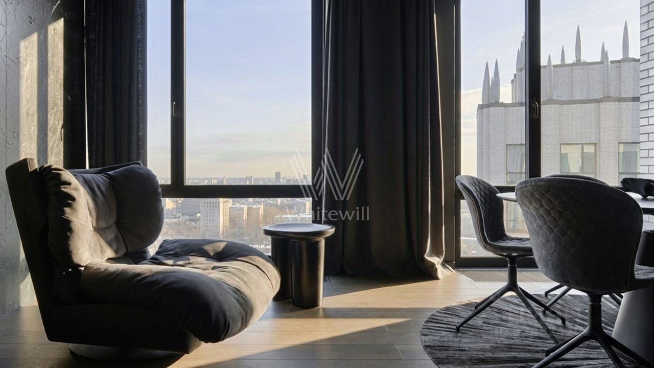 Эксклюзив. Видовая квартира с 2 спальнями, общей площадью 136 м² в комплексе бизнес-класса ''Пресня Сити''. Пентхаус с дизайнерской отделкой расположен на последнем 44 этаже, откуда открываются панорамные виды на Москву. Выполнена дизайнерская отделка в современном стиле с использованием фактуры дерева, натурального камня и кожи. Полностью укомплектована мебелью от премиальных брендов Baxter, Paltrona Frau, BoConcept, Rimadesio, Flos. Функциональная планировка включает просторную кухню-гостиную с обеденной и ТВ зонами, мастер-спальню с собственной гардеробной и ванной комнатой с двумя окнами, вторую спальню со своим санузлом, гостевой санузел, прихожую с гардеробной и холл. Благодаря 8 панорамным окнам, ориентированным на две стороны света, пространство наполнено воздухом и теплом. Главное о доме. ''Пресня Сити'' — три башни бизнес-класса по 44 этажа в неоклассическом стиле. Фасады облицованы клинкерной плиткой с градиентом от терракотового у основания до светло-кофейного на верхних уровнях. Лобби каждой башни отражает стихию: огонь с камином и красными акцентами, вода с глубокими синими тонами и земля с зелёными мотивами. Для жителей открыты фитнес-клуб, spa, супермаркет, кафе, детский сад и центр раннего развития. Дворы оформлены по проекту BuroMoscow: прогулочные аллеи, детские и спортивные площадки, лаунж-зоны в зелени. Главное о локации. ''Пресня Сити'' — три башни бизнес-класса по 44 этажа в неоклассическом стиле. Фасады облицованы клинкерной плиткой с градиентом от терракотового у основания до светло-кофейного на верхних уровнях. Лобби каждой башни отражает стихию: огонь с камином и красными акцентами, вода с глубокими синими тонами и земля с зелёными мотивами. Для жителей открыты фитнес-клуб, spa, супермаркет, кафе, детский сад и центр раннего развития. Дворы оформлены по проекту BuroMoscow: прогулочные аллеи, детские и спортивные площадки, лаунж-зоны в зелени. Комментарий эксперта. Меня зовут Дарья Соломонова — брокер компании Whitewill. Я отвечаю за продажу этого лота. Свяжитесь со мной, чтобы получить расширенную презентацию, больше фотографий или договориться о просмотре. Могу провести экскурсию по локации и познакомить вас с этим домом. ID 317 025.