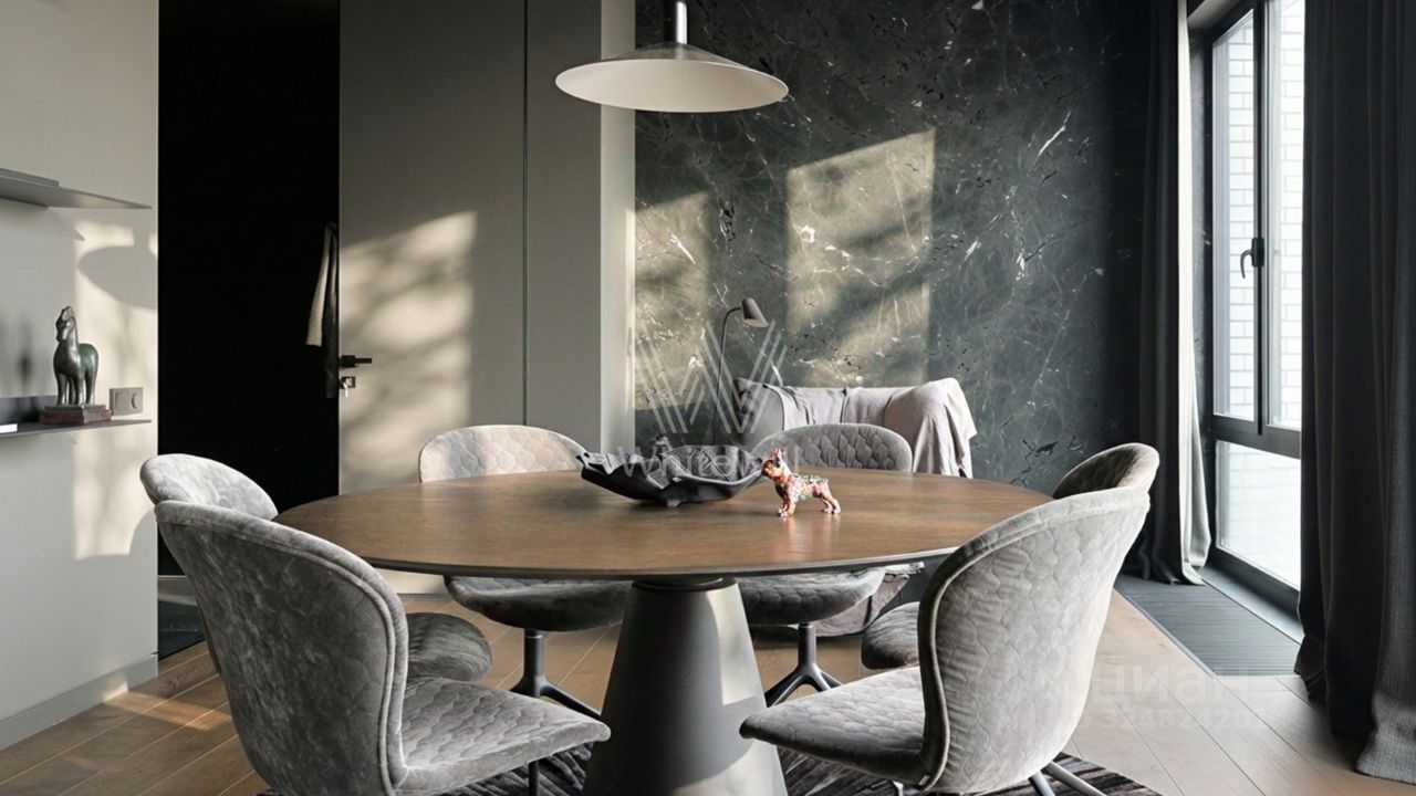 ID: 5823. Дизайнерская трёхкомнатная квартира с двумя мастер-спальнями и роскошной гостиной с панорамным остеклением. В отделке использованы бразильский палисандр, оникс, мрамор. Подключена система умный дом. Мебель от ведущих итальянских брендов. Дом с подземным паркингом и бассейном расположен в окружении театров, ресторанов и лучших гимназий Москвы. Предусмотрено кладовое помещение. 1 м/м в подземном паркинге. FS Property - участник ассоциации агентств элитной недвижимости AREA.