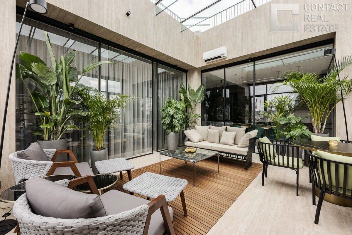 Эксклюзивный пентхаус площадью 226 м² с зимним садом и дизайнерской отделкой в элитном ЖК ''Садовые кварталы'' в Хамовниках Идеальный вариант для семьи с детьми. Комфортная планировка: • гостиная с биокамином, • кухня со столовой зоной, • хозяйская мастер-спальня с зоной кабинета, гардеробной и санузлом, • еще две просторные спальни и два санузла, • постирочная, • удобная прихожая с гостевым санузлом и гардеробом. Уникальное преимущество — собственная остекленная веранда с прекрасными видами на город, оборудованной зоной для отдыха и встречи гостей и мини-кухней с грилем. Квартира полностью готова к заселению, меблирована и оборудована техникой ведущих мировых брендов. Выполнена премиальная отделка по авторскому дизайн-проекту с использованием дорогих материалов: натурального камня, дерева, стекла. Квартира очень светлая, благодаря множеству ''окон в пол'' и высоким потолкам. Окна выходят на три стороны света — открываются живописные виды в сторону Новодевичьего монастыря, на Воробьевы горы и легендарную высотку МГУ, на небоскребы делового центра ''Москва-Сити''. О ЖК: Комплекс клубных домов ''Садовые кварталы'' расположен в центре района Хамовники, вблизи с живописным парком Трубецких, Новодевичьим монастырем и его прудами, а также благоустроенными московскими набережными. Своя благоустроенная территория с прудом и парком, двухэтажный фитнес-клуб премиум-класса, общеобразовательная школа с бассейном и спортивными залами, частный детский сад и два центра развития, где маленькие жители смогут получить дополнительное образование — всё это преимущества жителей. В окружении дома есть все необходимое для комфортного проживания: магазины, кафе и рестораны, фитнес-центры и учебные заведения. Локация удобна и для пеших прогулок, и для поездок на автомобиле. Для владельцев авто предусмотрен просторный подземный паркинг. Дополнительно можно приобрести два машино-места, одно мото-место и кладовое помещение. Агентство состоит в ассоциации AREA [Лот #23757]
