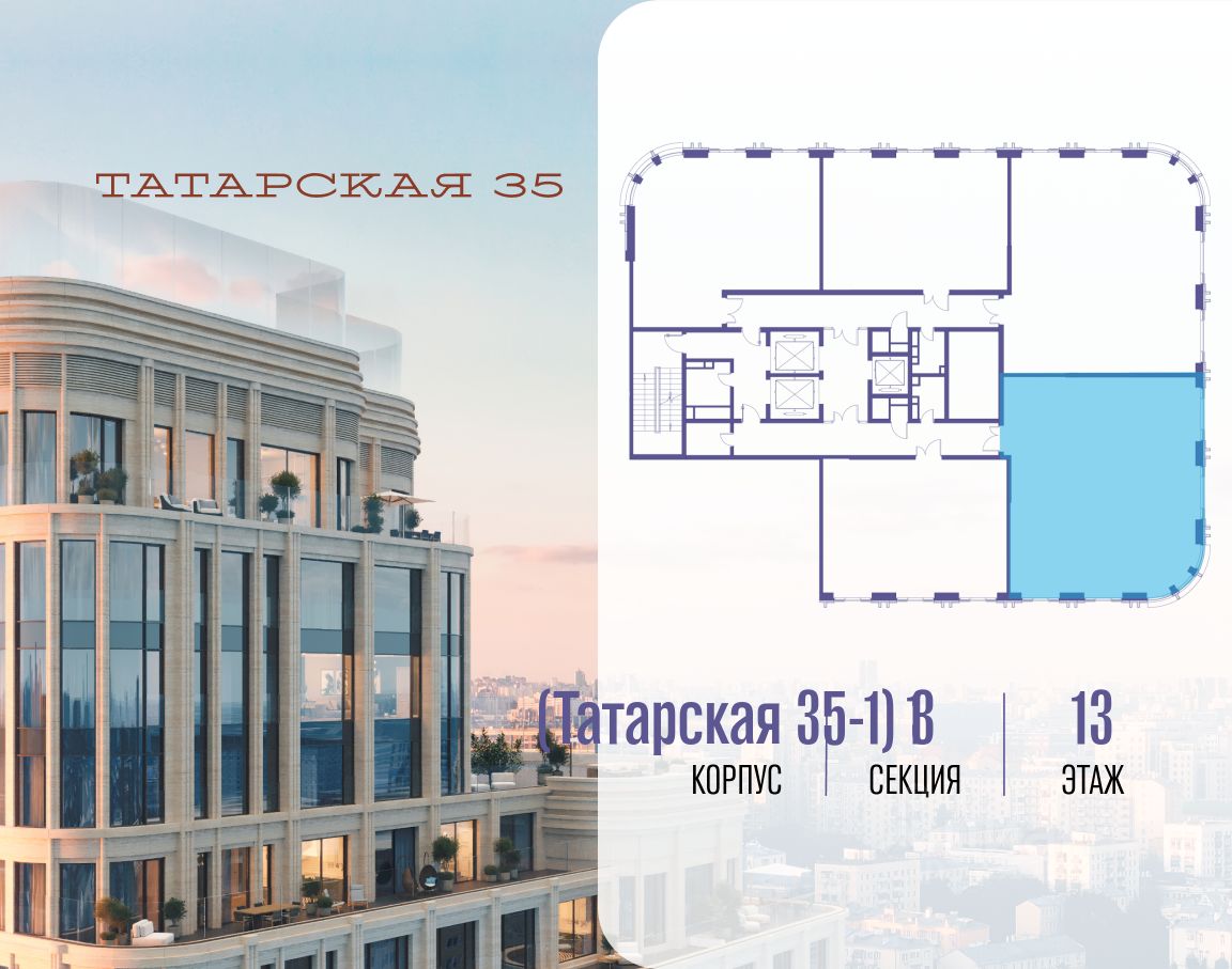 Продается просторная квартира площадью 193.80 м2 в жилом комплексе ТАТАРСКАЯ, 35. Квартира находится в 1 секции корпуса 1. Этаж 13-й из 20. Квартира без чистовой отделки, с просторной кухней 42.40 м2. Жилая площадь 72.90 м2. Высота потолка от 3.50. ТАТАРСКАЯ, 35 - новая архитектурная доминанта Замоскворечья, достопримечательность на фотопанорамах исторического центра Москвы. Элитный дом, созданный для тех, кто умеет смотреть далеко вперед, мыслить масштабно и воплощать собственный сценарий жизни. Вдохновляющие прогулки по променаду набережной, в уютных переулках, в парке ''Зарядье'', в Михайловском саду и Репинском сквере. Наслаждение высоким искусством в Третьяковской галерее, Доме Музыки, театральном музее им. А.А. Бахрушина, театре на Малой Ордынке. За окнами - Кремль, высотка на Котельнической, панорамы Замоскворечья и острова Балчуг, огни Садового кольца. Собственные спорт-румы, детская, репетиторская, бьюти-пространства, деловое пространство с коворкингом, переговорной и сигарной. Собственный трехуровневый фитнесс-центр с бассейном, тренажерным залом, сауной, хаммамом, массажным кабинетом. Площадь двора - 1,8 га, половина территории покрыта деревьями, кустарниками и лужайками. Дом расположен внутри Садового кольца - отсюда в считанные минуты можно добраться до важнейших мест столицы: достопримечательностей и парков, театров и ресторанов, деловых и административных центров. 7 минут до Кремля на автомобиле, 15 минут до Третьяковской галереи и 8 минут до Садового кольца пешком. Планировочные решения и визуализации предварительны, возможны изменения.