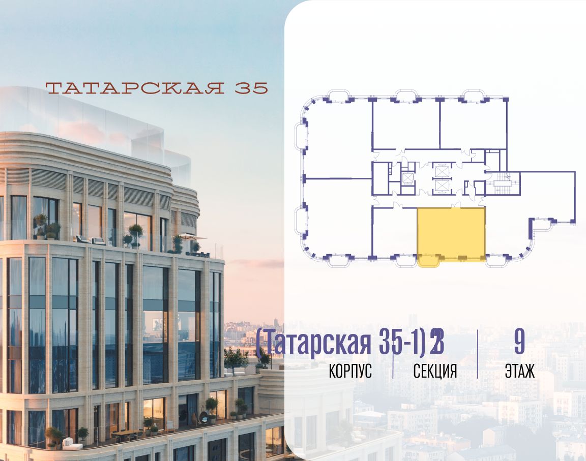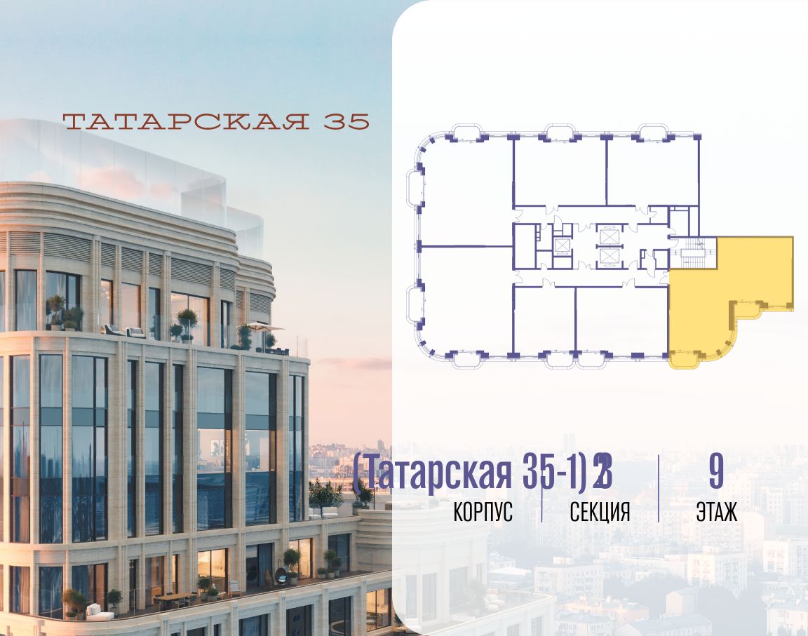 Продается просторная квартира площадью 221.30 м2 в жилом комплексе ТАТАРСКАЯ, 35. Квартира находится в 1 секции корпуса 1. Этаж 9-й из 20. Квартира без чистовой отделки, с просторной кухней 61.10 м2. Жилая площадь 80.80 м2. Высота потолка от 3.50. ТАТАРСКАЯ, 35 - новая архитектурная доминанта Замоскворечья, достопримечательность на фотопанорамах исторического центра Москвы. Элитный дом, созданный для тех, кто умеет смотреть далеко вперед, мыслить масштабно и воплощать собственный сценарий жизни. Вдохновляющие прогулки по променаду набережной, в уютных переулках, в парке ''Зарядье'', в Михайловском саду и Репинском сквере. Наслаждение высоким искусством в Третьяковской галерее, Доме Музыки, театральном музее им. А.А. Бахрушина, театре на Малой Ордынке. За окнами - Кремль, высотка на Котельнической, панорамы Замоскворечья и острова Балчуг, огни Садового кольца. Собственные спорт-румы, детская, репетиторская, бьюти-пространства, деловое пространство с коворкингом, переговорной и сигарной. Собственный трехуровневый фитнесс-центр с бассейном, тренажерным залом, сауной, хаммамом, массажным кабинетом. Площадь двора - 1,8 га, половина территории покрыта деревьями, кустарниками и лужайками. Дом расположен внутри Садового кольца - отсюда в считанные минуты можно добраться до важнейших мест столицы: достопримечательностей и парков, театров и ресторанов, деловых и административных центров. 7 минут до Кремля на автомобиле, 15 минут до Третьяковской галереи и 8 минут до Садового кольца пешком. Планировочные решения и визуализации предварительны, возможны изменения.