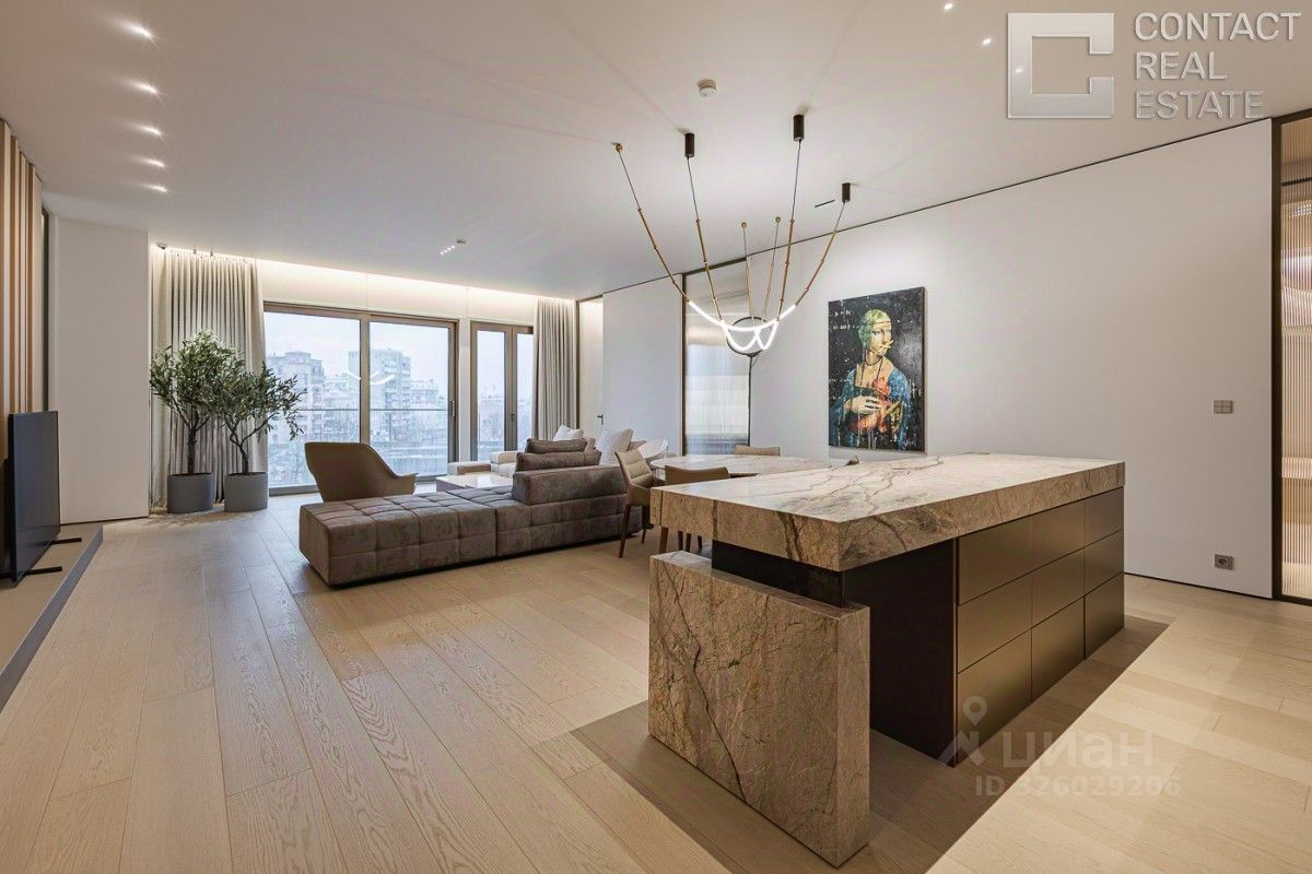 Просторная стильная квартира площадью 167.5 м² в элитном особняке ''Полянка/44'' в престижном районе Якиманка Комфортная планировка предусматривает: гостиную с большим диваном, тв-системой и биокамином, столовой зоной и оборудованной кухней, две мастер-спальни со своими санузлами и гардеробными, третью спальню со своим санузлом, а также удобную большую прихожую. Квартира полностью готова к заселению: выполнен дизайнерский ремонт, мебель и предметы декора от премиальных брендов, полностью оборудованные ванные с качественной сантехникой. Располагается на 6 этаже — из окон открывается живописная панорама города, виды на главные достопримечательности столицы: башни Кремля, небоскребы Сити, Останкинскую башню, сталинские высотки. Благодаря высоким потолкам 3,8 метра и множеству ''окон в пол'', пространство наполнено светом. Дом оборудован современными инженерными системами кондиционирования, вентиляции, увлажнения и очищения воздуха, благодаря которым в доме всегда будет комфортный микроклимат. О ЖК ''Полянка/44'' — элитный жилой комплекс в престижном районе Якиманка в центре столицы, всего в 2 км от Кремля. Проект состоит из восьми особняков до 7 этажей в сочетании с благоустроенной территорией и собственной инфраструктурой. Архитектура создана McAslan + Partners — авторитетной студией из Лондона. Концепция приватного двора с садом 0,8 га разработана международным ландшафтным бюро Gillespies. За комфорт проживания в доме отвечает круглосуточный консьерж-сервис, а за безопасность — многоуровневая система контроля доступа, охраны и видеонаблюдения. Для авто предусмотрен подземный паркинг. Расположение идеально подходит для комфортного проживания в центре стрлицы. Вокруг множество парков и зеленых бульваров, кафе и рестораны, лучшие школы и университеты. В шаговой доступности находятся парк искусств ''Музеон'', ЦПКиО им. М. Горького, Посольство Франции и начальная школа французского лицея, фитнес-клуб World Class. Наша компания состоит в ассоциации AREA [Лот #24486]