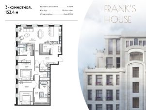 Номер лота: 20Продается трехкомнатная квартира в ЖК ''Дом Франка'' по адресу Москва, ЦАО, Мещанский, Большой Кисельный переулок, д. 11, корп. 3 Общая площадь квартиры - 153,40 кв.м., этаж 6. Стоимость квартиры - 329 798 072 р.Представляем вашему вниманию Franks House - триумфальное возвращение любимого московского стиля модерн в классическом варианте и новом прочтении. Два потрясающих проекта: House Frank - реконструкция знаменитого торгового дома империи Франков начала прошлого века и House Falconnier - современное прочтение элитной недвижимости. Два самодостаточных шедевра, объединенные общей концепцией.House Frank и абсолютное новое, современное трехсекционное здание House Falconnier. В центре архитектурной композиции проекта - приватный зеленый внутренний двор с ландшафтным дизайном. Всего в комплексе запланировано 147 премиальных резиденций, площадью от 63 до 263 кв. метров с возможностью объединения. На первых этажах расположены квартиры с частными палисадниками, обрамленными живой изгородью, верхние же этажи занимают просторные пентхаусы с простыми углубленными террасами и панорамным остеклением, дающие возможность любоваться историческими и культурными памятниками Москвы, не выходя из дома. Подземный паркинг жилого комплекса располагает достаточным количеством мест для удобного размещения ваших транспортных средств. Территория Franks House находится под круглосуточной охраной и видеонаблюдением. Во всех резиденциях действует единая система обслуживания дома. House Falconnier. Современное прочтение московского модерна.Не случайно второй дом нашего комплекса элитных резиденций носит имя Фальконье. Испанский архитектор и философ стиля модерн Антонио Гауди считал, что величайшее свойство произведения искусства - гармония, которая в пластических искусствах рождается из света. Свет создаёт рельеф и украшает, а архитектура - это упорядочение света. Швейцарец Гюстав Фальконье - создатель выдувных стеклянных кирпичей, названных его именем, подарил мировой архитектуре тот самый свет, который зодчие искали веками. Следуя традициям, в работе над House Falconnier мы используем не только натуральный камень, но и стеклянные произведения искусства Фальконье, возвращая Москве её нарядный роскошный модерн во всех деталях. Ключевые преимущества:- элитные резиденции в историческом центре столицы, на Бульварном кольце, - 147 резиденций, площадью от 63 до 263 (с возможностью объединения)- возрождение культового московского стиля модерн,- просторные пентхаусы с террасами и панорамным остеклением на верхних этажах,- зона патио для квартир на первом этаже,- респектабельная входная группа,- лобби с отделкой из натурального камня, арочные потолки холла из стеклянного кирпича, натуральное дерево,- собственный бассейн, SPA, хаммам, фитнесс-зона, зона ожидания и переговоров, галерея,- конференц-зал и кафе-кондитерская для деловых и неформальных встреч,- круглосуточная охрана и видеонаблюдение,- единая система сервисного обслуживания дома.Архит