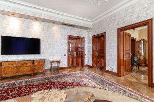 193259Эксклюзив Kalinka Group.Светлая 6-комнатная квартира 315,4 кв. м в историческом центре столицы на Арбате. В квартире выполнен ремонт по индивидуальному дизайн-проекту в стиле ар-нуво с характерным отказом от прямых линий в пользу плавных органических форм: цветочные и растительные мотивы искусно вплетены в рисунки уникальных витражей, выполненных мастерской Поповых. По созданным до полной реконструкции здания слепкам восстановлена историческая лепнина на потолках и ручная гипсовая лепка. Дубовые двери и дубовый паркет, люстры из латуни выполнены по индивидуальному заказу в мастерской пригорода Парижа. Планировкой предусмотрены: - просторная гостиная с зоной столовой,- мастер-блок, включающий зону библиотеки, кабинет, спальню с балконом, ванную и гардеробную комнаты, - ''детский'' блок, включающий спальню с ванной и гардеробными комнатами, 2 спальни, ванную комнату, - кухня-столовая со вторым выходом из квартиры и блоком для персонала (спальня, ванная комната), гардеробная при входе, гостевой санузел, просторная хозяйственная комната с зоной постирочной и серверной.Высота потолков 3,6 м. В квартире 20 окон, что придаёт пространству ещё больший объём и наполняет его воздухом и светом.Окна ориентированы на две стороны света, открываются виды на Арбат и в тихий зелёный двор с панорамами исторического центра столицы.Оперативный показ.