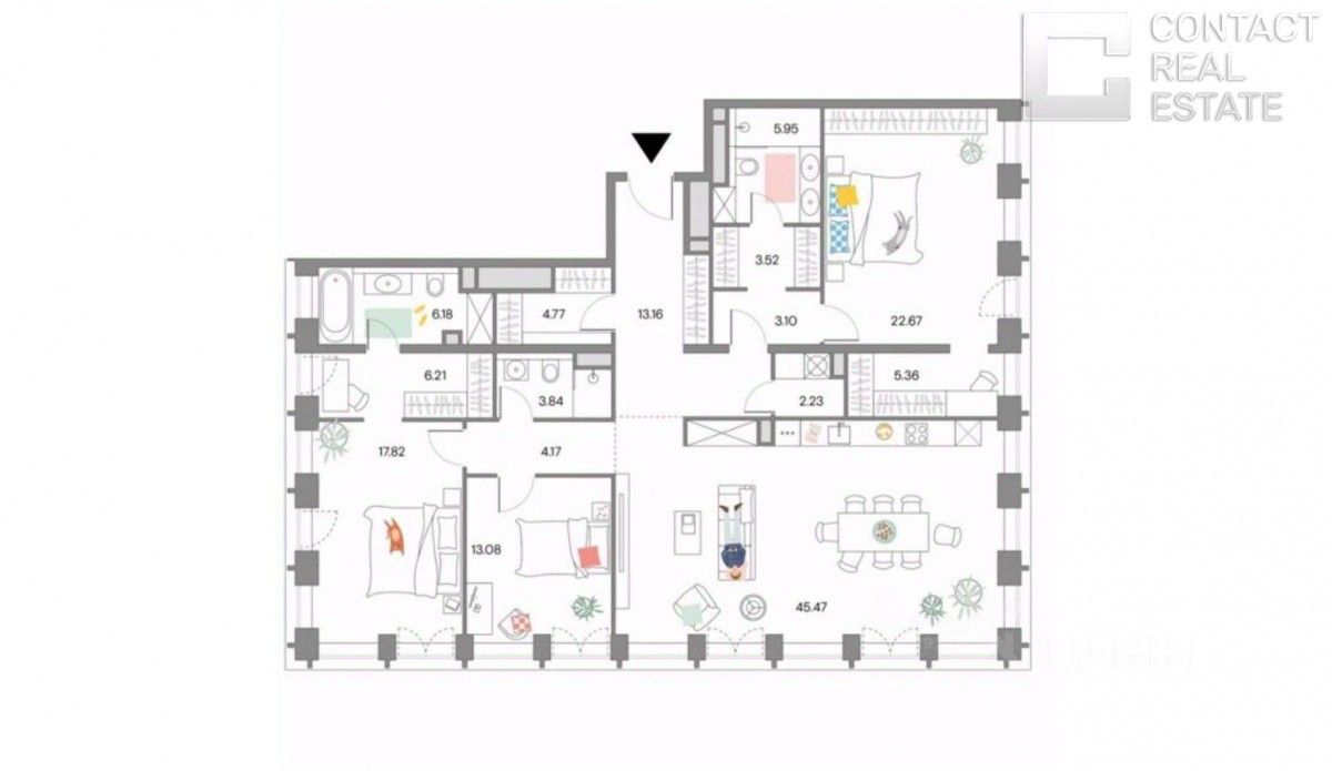 Только сообщения. Не звонить. Камерный дом премиум-класса, две башни по 45 квартир, четыре квартиры на этаже. Продается квартира в башне Омега с просторной кухней-гостиной 34 м., мастер-спальней 17 м., с гардебной 9 м., мастер-ванной с красивой ванной и большими окнами в пол, в гостевом санузле установлен душ. В квартире много света. Высокие потолки 3.8 метра создают ощущение простора. Огромные деревянные окна в пол высотой 2.8 метра, с французскими балконами выходящих во двор на юго-восток. В отделке использовались итальянские материалы: инженерная дубовая доска IPF, керамогранит Ceope, сантехника Artceram, смесители Cisal. Итальянские выключатели и розетки Bticino, вся бытовая техника из топ линии Asko. Шведско-швейцарская электрика ABB. Трубы Rehau. В доме центральное кондиционирование, приточно-вытяжная вентиляция, климат-контроль, очистка воздуха, есть своя бойлерная. Продается вместе с мебелью итальянского производства: кухня Armony, обеденный стол и стулья Cattelan, диван, журнальный стол и кровать Ulivi, телевизоры LG OledG5. В доме расположен премиальный фитнес-клуб Crocus Fitness by Emin Agalarov на 3 тыс. кв.м c 25-метровым бассейном, спа-зонами, тренажерным залом, комнатами для персональных тренировок. Для жителей удобный доступ в клуб не выходя на улицу, через паркинг. В комплексе двухуровневая подземная парковка на 156 машиномест, кладовые комнаты, парковка для велосипедов, автомойка с детейлингом GetWash Premier c комнатой ожидания водителей и переговорными. Скоро в доме откроется ресторан. В 150 метрах от дома расположена прогулочная парковая зона с каскадом Красногвардейских прудов, детскими площадками, беговыми дорожками, уличными тренажерами, катком, скейт-площадкой. Суммарно прогулочная парковая зона составляет 23 Га, включая Красногвардейские пруды и парк Красная Пресня. Район отлично развит: рядом находятся школы, детские сады, клиники и магазины. До метро ''Улица 1905 года'' всего 11 минут пешком, быстрым шагом - 8 минут. Удобная транспортная развязка для автомобилей благодаря прямому выезду на Звенигородское шоссе. Много альтернативных вариантов выезда в центр и в область, всегда можно объехать пробки. Квартира продается без обременений, с мебелью и техникой, полностью готовая для проживания. В квартире никто не жил. Один собственник.