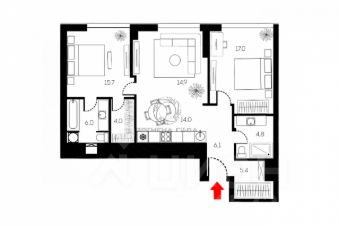 3-к, Усачева, 15а Показать на карте