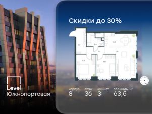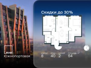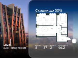 Цена указана с учётом скидки при 100%-й оплате, несубсидированной ипотеке, рассрочке (кроме программы ''Рассрочка 0%'').В северной части района Печатники продается 1-комнатная квартира площадью 38.80 кв.м без отделки. Квартира расположена на 32 этаже 49-этажного корпуса 8 в жилом комплексе комфорт-класса Level Южнопортовая (компания Level Group/Левел групп). Отличная транспортная доступность:- 10 мин. пешком до станции метро ''Кожуховская'',- 20 мин. пешком до станции МЦК ''Дубровка'',- 3 мин. на авто до ТТК,- 13 мин. на авто до Садового кольца,- 15 мин. на авто до Бульварного кольца. Продуманный архитектурный проект:- авторская архитектура от бюро СПИЧ,- уникальные виды на реку, парки и достопримечательности города,- высота потолков в квартирах до 6 м,- окна высотой до 1,87 м с высоким коэффициентом сопротивления теплоотдаче. Расположение:Level Южнопортовая строится в северной части района Печатники - самой приближенной к центру. Здесь будет сформирован новый район ''Южный порт'', где построят крупный жилой и общественно-деловой центр, аналогичный Москва-Сити. В течение 10-12 лет в этом месте появятся не только жилые дома, но и развитая инфраструктура для жизни и работы. А еще совсем рядом находится набережная Москвы-реки, где планируется построить причалы для речных трамвайчиков и канатную дорогу.Уже сейчас вокруг жилого комплекса работают десятки магазинов и торговых центров, рядом расположено 6 парков, среди которых музей-заповедник ''Коломенское''. В 10 минутах пешком - 2 муниципальных и 2 частных детских сада, 7 общеобразовательных школ.Внутренняя инфраструктура:Для отдыха жителей в каждом корпусе предусмотрено лобби, оснащенное местами для отдыха, гостевыми санузлами и лапомойками, а в отдельных корпусах - камином. За счёт больших окон и высоких потолков пространства будут наполнены воздухом и светом.На первых этажах жилого комплекса откроются магазины, салоны красоты, фитнес-центр. Для детей строятся собственные детский сад и школа. Благоустройство:Внутренний двор комплекса разработан совместно с бюро GAFA. Основная идея - создать аналог Центрального парка в Нью-Йорке, гармонично сочетая высотные здания и большое изолированное парковое пространство.Вся площадь двора-парка будет огорожена и составит более 2 га, из которых 45% - озеленение. Одним из самых важных ландшафтных элементов здесь станет небольшая речка, наполняющаяся во время дождя. Вокруг неё появится сеть из островов, внутри которых расположатся тематические зоны спорта и отдыха. Технологии и инженерия:- автоматическая передача в управляющую компанию показаний квартирных счётчиков,- телефонная связь, телевидение и интернет на базе оптической мультисервисной сети,- гостевой Wi-Fi в лобби и на территории двора,- единый ключ доступа для входа на территорию комплекса.