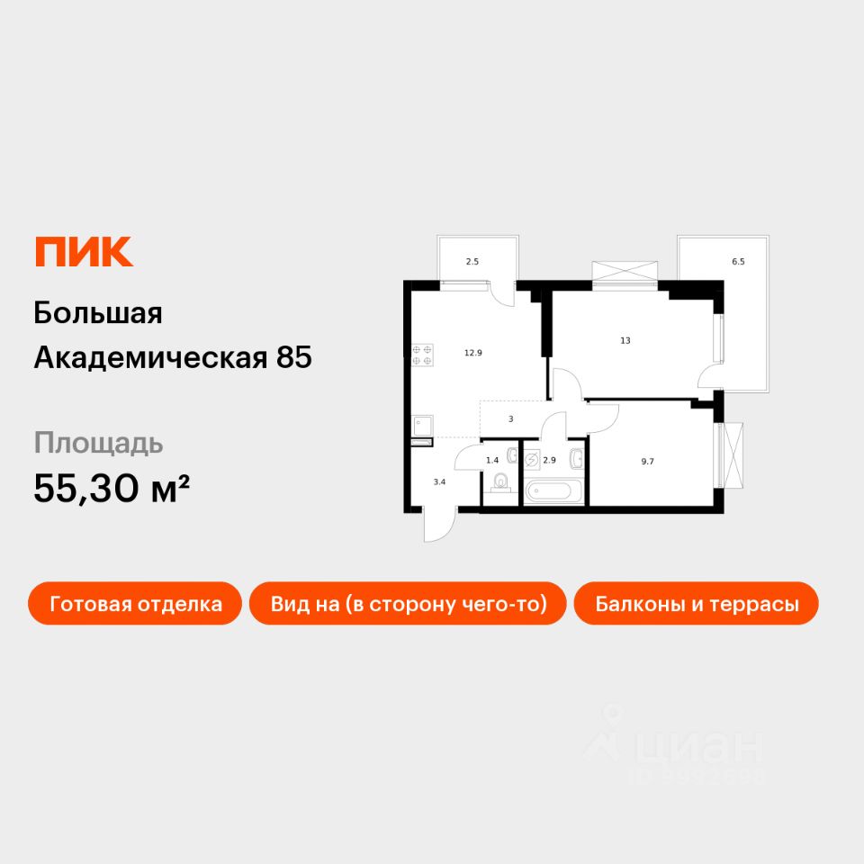 Продаётся 2-комн. апартаменты площадью 55,3 кв.м на 3 этаже 24 этажного дома (Корпус 3.6, Секция 2) проекта ПИК Большая Академическая 85. Светлый просторный подъезд на уровне земли, функциональная планировка, большие окна, c отделкой. ''Большая Академическая 85'' возводится в Тимирязевском районе — одном из самых тихих и зелёных мест в Москве. От домов до метро ''Окружная'' — 15 минут пешком, а до станции МЦК ''Лихоборы'' — 11 минут. Рядом с ''Большой Академической 85'' есть всё необходимое для комфортной жизни: поблизости работают семь детских садов, шесть школ, три вуза и два торговых центра. Вокруг много парков, в которых приятно гулять и отдыхать. В жилой квартал входят одиннадцать корпусов, в которых есть квартиры и апартаменты. Переменная высота домов — от 11 до 24 этажей — создаёт ощущение простора и позволяет солнечному свету свободно проникать во дворы и комнаты. Фасады природных цветов украшены разными фактурными элементами, поэтому каждый дом выглядит по-особенному. В домах просторные и светлые подъезды без ступеней и пандусов, с выходами во двор и на улицу. На первых этажах домов — магазины и кафе. Для владельцев автомобилей предусмотрен подземный паркинг, а для самых маленьких жителей — собственный детский сад, который объединён с начальной школой. В зелёных дворах-парках оборудованы современные детские площадки и места для отдыха. Ещё на территории проекта есть Local Play — большое игровое пространство для детей, где будет интересно и малышам, и подросткам. Артикул 924705 (Застройщик ООО ''СПЕЦИАЛИЗИРОВАННЫЙ ЗАСТРОЙЩИК ЛИХОБОРЫ'')
