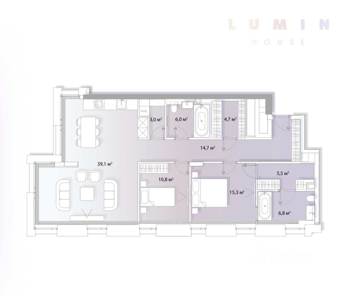 Предлагается светлый апартамент с отделкой, без мебели. Правильная форма, четкие линии. Просторная зона кухни-гостиной, две спальни (каждая со своим с/у), постирочная зона, отдельно гардероб для верхней одежды. Панорамные окна. Никто не жил! Есть парковочное место в подземном паркинге.