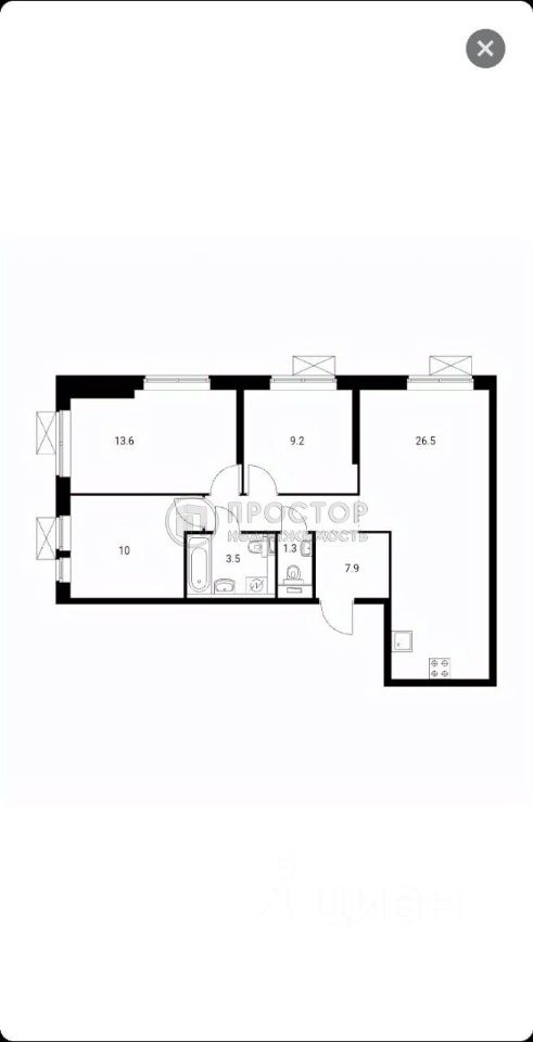 37 м² · Этаж 26 из 45