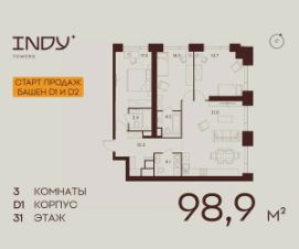 Продажа от застройщика. Продается просторная 3-комнатная квартира на 38 этаже жилого комплекса Indy Towers. Срок сдачи: 3 кв. 2029 г. Расположение: Комплекс расположен в Хорошевском районе Москвы, на улице Куусенина, в окружении почти 150 гектаров парков для прогулок и активного отдыха. Помимо этого, рядом с комплексом есть: - Детская международная академия тенниса - Ледовый спортивный комплекс ЦСКА - Футбольный стадион ''ВЭБ-Арена'' - Крупнейший в Европе торовый центр ''Авиапарк'' - Богатый выбор государственных и частных школ - 8 парков, окружающих комплекс Транспортная доступность: - 3 минут до метро Зорге - 2 минуты пешком до парка Березовая роща - 10 минут на машине до ТТК - 8 минут на машине до ТРЦ Авиапарк Внутренняя инфраструктура Indy Towers: - Кафе и продуктовые магазины - Тайский SPA - Фитнес зал - Комьюнити-зона - Детский клуб Аквилон KIDS - Детский сад Преимущества: - Технология энергоэффективности Termo-S, снижающая теплопотерю домов и позволяющую экономить на электроснабжении - Soundstop - технология дополнительной шумоизоляции на 39 дБ в квартирах с WhiteBox и чистовой отделкой - Система умного дома inHome 3.0 позволит контролировать коммунальные расходы, оплачивать счета и пользоваться услугами, не выходя из умного дома