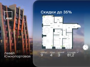 3-к, Левел Южнопортовая ЖК, 13 Показать на карте