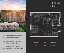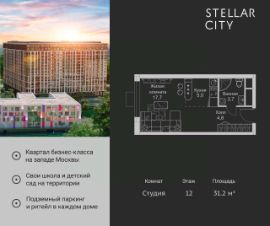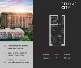 Продается квартира от надежного застройщика Tashir Estate в квартале бизнес-класса Stellar City в ЗАО Москвы. Площадь квартиры составляет: 93.7 кв. м, потолки: 3.1 м Квартира находится на 17 этаже, 4 корпуса жилого квартала Stellar City — микрогорода будущего на орбите Москвы. Stellar City — квартал в ЗАО Москвы вблизи инновационного центра Сколково. В окружении — 11 парков и природных зон, в том числе Долина реки Сетунь, Мещерский лес и парк развлечений The Rink. Город в городе Чтобы дом и инфраструктура вокруг отвечала динамичному лайфстайлу жителя мегаполиса, в основу проекта легла концепция город в городе, которая позволяет решать все бытовые вопросы in-home. В квартале будут возведены школа и детский сад, воркаут-зоны, променад, вело и беговые дорожки, детские площадки для каждого корпуса, а также коммерция на первых этажах для ежедневных покупок. Все необходимое — на расстоянии нескольких шагов. Изящные и лаконичные лобби Авторский дизайн, натуральные материалы в отделке и безупречный интерьер вне времени. Лобби и холлы в проекте бизнес-класса Stellar City ничем не отличаются от входных групп в премиум-сегменте благодаря качественным европейским материалам в отделке, стильному дизайну, консьерж-сервису и уютной зоне ожидания с журнальными столиками и мягкой мебелью. Комфорт и безопасность Закрытая территория, охрана, система СКУД, специально разработанное мобильное приложение дома для резидентов и подземный паркинг с круглосуточным наблюдением и доступом с помощью автоматического считывания номера авто.
