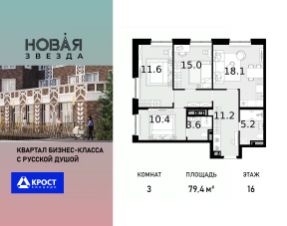 Продаётся 3-к квартира 79.4 кв.м. на 16-м этаже 22 этажного дома, корпус 6 - Резиденция ''Хабаровск''. Без отделки. Легендарный квартал ''Новая звезда'' продолжается II очередью, которая спроектирована как мультифункциональный кластер. ЖК ''Новая Звезда'' расположен на территории Новой Москвы, в 10 мин. от м. Теплый стан и в 9 мин. пешком от строящейся станции метро ''Бачуринская''. Дизайн квартала спроектирован так, чтобы создать 2 города — Гостиный двор и комплекс жилых резиденций.Гостиный двор это стилобат, в котором разместятся рестораны, магазины, спортивные секции, детские кружки. Это место для активной городской жизни прямо в вашем квартале. Гостиный двор, безусловно, является уникальным форматом организации общественной жизни, предлагая жителям квартала весь необходимый спектр услуг в шаговой доступности от дома..Жителям II очереди квартала ''Новая звезда'' будут доступны все инфраструктурные преимущества единого квартала:- образовательный кластер с уже построенной инновационной школой нового поколения,- спортивная инфраструктура,- торговые площади с услугами на первых этажах жилых домов.Прямая продажа от застройщика ООО СЗ ''ГСД''.