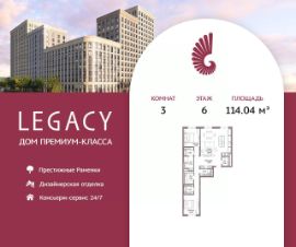 Просторная светлая квартира общей площадью 120,2 м2 на 10-м этаже премиального жилого комплекса Legacy, расположенного в прекрасном зеленом районе Раменки. Отличная функциональная планировка: кухня-гостиная, 3 мастер-спальни со своими с/у, продуманной гардеробной зоной и эргономичными системами хранения, гостевой санузел и просторный холл, который с первых шагов погружает в безупречное пространство изысканности и уюта. Большое количество естественного света и удобное расположение комнат гарантирует будущим жильцам исключительный комфорт. Сердцем квартиры является кухня-гостиная, общей площадью 18.6 м2., для теплых вечеров в кругу семьи. Для тех, кто привык выбирать лучшее, помимо опции White Box также доступны два варианта отделки от застройщика: Premium и Elite премиальные материалы в отделке, мебель от европейских производителей, и освещение индивидуального изготовления. Жилой комплекс Legacy располагается на Мичуринском проспекте в районе с развитой инфраструктурой, богатой историей и высокой транспортной доступностью. Москва-река, Ботанический сад МГУ, главный корпус МГУ и Воробьевы горы на расстоянии прогулки от комплекса. Проект состоит из 9 секций переменной этажности от 8 до 17 этажей. В каждой секции не более 5 квартир на этаже, что обеспечивает высокий уровень приватности. Архитектура Проект Legacy разработан архитектурным бюро Speech. Его строгая лаконичность дополнена современными стандартами роскошной и комфортной жизни это бессменная классика, которая всегда вне моды. Благоустройство Свой приватный двор-сквер площадью 3 600 м2 с пространствами для всех возрастов: на территории располагаются игровые площадки, детский городок, песочница, воркаут-зоны, батуты, места для отдыха, лабиринты, настольный теннис и шахматные столы. Презентабельные лобби Дизайнерские лобби и холлы с премиальной отделкой. Изысканный стиль и высококачественные европейские материалы, отражающие высокий статус резидентов дома. Инфраструктура в доме Магазины, салон красоты, спортивная студия на первом этаже. А также ресторан Seasons, который позволяет разнообразить рацион и сделать каждый ужин особенным. Комфорт и безопасность Премиальный консьерж-сервис 24/7, круглосуточная охрана, видеонаблюдение, система СКУД, закрытый охраняемый паркинг и эксклюзивное мобильное приложение для решения бытовых вопросов резидентов.
