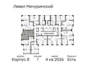 Цена указана с учётом скидки при 100%-й оплате, несубсидированной ипотеке, рассрочке (кроме программы ''Рассрочка 0%''). В жилом квартале, расположенном на границе с природным заказником ''Долина реки Очаковки'', продаётся 1-комнатная квартира площадью 40.70 кв.м без отделки. Квартира расположена на 2 этаже 48-этажного корпуса 8 в жилом комплексе бизнес-класса Левел Мичуринский (компания Level Group/Левел групп). Отличная транспортная доступность: - от 10 мин. пешком до станции метро ''Мичуринский проспект''- 15 мин. пешком до станции метро ''Аминьевская''- 7 мин. на авто до МКАД- 10 мин. на авто до ТТК- 15 мин. на авто до Москва-Сити Продуманный архитектурный проект:- Выразительная архитектура от известных бюро: корпуса 1-6 - СПИЧ, корпуса 7-13 - Borisov Architects,- Из окон открываются живописные виды на парки, Москва-Сити и МГУ,- Высокие потолки до 6,35 м,- Стильные лобби с окнами в пол и высокими потолками до 4,7 м,- С каждого этажа дома на лифте можно спуститься в подземный отапливаемый паркинг.Расположение:Жилой комплекс Левел Мичуринский строится в одном из самых зелёных районов Москвы - Очаково-Матвеевское. Этот уголок столицы идеален для поддержания здорового образа жизни. В шаговой доступности от проекта находятся заказник ''Долина реки Очаковки'' - 1 мин. пешком и Очаковский парк - 7 мин. пешком. На велосипеде можно добраться до таких парков, как ''Событие'', парк Олимпийской деревни, парк 50-летия Октября и парк Школьников.В 15 минутах езды на авто расположено более 30 детских садов (из них 14 в пешей доступности), 32 школы (из них 13 в пешей доступности) и 14 вузов. Также в ближайшем окружении - более 25 медицинских учреждений, 11 спортивных клубов и 22 продуктовых супермаркета.Внутренняя инфраструктура:На территории жилого комплекса строится три детских сада и школа. На первых этажах домов откроется супермаркет, фитнес-центр, ресторан, кафе и другие сервисы. Подземные этажи займут паркинги: трёхуровневые - в этапах 1 и 2, одноуровневый - в этапах 3 и 4.Преимущества проекта:- 4,5 га благоустроенной территории с видовым мостом, уличным кинотеатром, зонами для тихого отдыха, работы, воркаута, площадки для петанка, футбола, настольного тенниса и пляжного волейбола.- Дизайнерские лобби с панорамным видом на двор, мойками для лап животных и комфортными зонами ожидания.- Безопасность жителей: круглосуточное видеонаблюдение всех зон общего пользования (лобби, лифты, паркинги, детские площадки), система контроля доступа, управление видеодомофоном через мобильное приложение, единый ключ доступа на территорию жилого комплекса.- Технологии и комфорт: высокоскоростной Wi-Fi в лобби и на придомовой территории, автоматическая система контроля и учёта ресурсов, абонентская связь с консьержем, распознавание номеров автомобилей при въезде в паркинг и выезде из него.