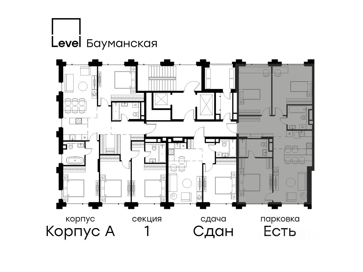 Цена указана с учётом скидки при 100%-й оплате, несубсидированной ипотеке, рассрочке (кроме программы ''Рассрочка 0%''). В Басманном районе (ЦАО) продается 4-комнатная квартира площадью 92.90 кв.м без отделки. Квартира расположена на 9 этаже 9-этажного корпуса '' A'' в жилом комплексе бизнес-класса Level Бауманская (компания Level Group). Отличная транспортная доступность: - 15 мин. пешком до метро ''Бауманская'' и ''Электрозаводская'', - 4 мин. на авто до ТТК, - 8 мин. на авто до Садового кольца, - 15 мин. на авто до Кремля. Продуманный архитектурный проект: - Архитектура от бюро ARCH(E)TYPE, вдохновленная историей района, - 95% квартир с панорамными видами на набережные, парки и сталинские высотки, - Высокие потолки от 3,02 м до 6,3 м, - Лобби с комфортными лаунж-зонами, - Благоустроенный закрытый двор без машин. Расположение и инфраструктура: Level Бауманская расположен в престижном Басманном районе (ЦАО). В пешей доступности находится легендарный МГТУ им. Баумана, Британский и Ломоносовский лицеи, а за 10 минут на автомобиле можно доехать до НИУ ВШЭ и других престижных вузов. На территории проекта предусмотрена развитая внутренняя инфраструктура: собственный детский сад и 10 коммерческих помещений на первых этажах домов. Благоустройство: Концепция благоустройства создана в соавторстве с именитым бюро GAFA. На площади 0,35 га расположатся зоны для отдыха, занятий спортом и прогулок. Во дворе для жителей жилого комплекса будет создан коворкинг прямо на свежем воздухе - открытые беседки и Wi-Fi на территории. Атмосферу приватности подчеркнёт обилие растительности - деревья и кустарники займут 50% двора. За счёт большого количества хвойных насаждений территория жилого комплекса будет зелёной круглый год. Инженерия и комфорт: Жители Level Бауманская не зависят от сезонного отключения горячей воды. Для этого в проекте предусмотрены центральные водонагреватели, обеспечивающие комфорт круглый год. Для безопасности созданы следующие системы контроля доступа: круглосуточное видеонаблюдение всех общественных зон (лобби, двор, лифты, паркинг), вызывные панели у входов на закрытую территорию, видеодомофоны с возможностью управления через мобильное приложение, распознавание автомобильных номеров при въезде/выезде в/из паркинга. По заявке собственнику предоставляется возможность просмотра изображения отдельных видеокамер. Лифты: В жилом комплексе устанавливается лифтовое оборудование Sicher Elevator - одного из ведущих производителей с 20-летним опытом и 40 представительствами по всему миру. Кабины от Sicher Elevator отличаются тихим и плавным ходом, особой износостойкостью и современными технологическими и дизайнерскими решениями. Все лифты имеют прямой доступ в паркинг с жилых этажей. В домах также предусмотрен сервисный лифт. Грузоподъёмность лифтов от 450 до 1000 кг, скорость 1,6 м/с.