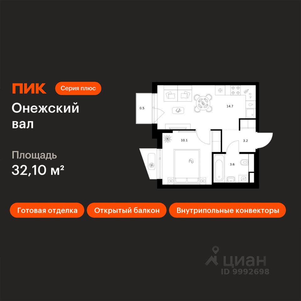 Новостройка! Продается 1-комн. кв-ра площадью 32,1 кв.м, (Корпус 1.1.5, Секция 5) 4 этаж 9-этажного дома в Онежский вал от ПИК. Квартал ''Серии плюс'' строится на севере Москвы, в 10 минутах пешком от станции метро ''Селигерская'' и МЦД ''Моссельмаш''. Проект понравится всем, кто привык к комфортной жизни и ценит возможность оставаться в ритме большого города и быстро добираться до центра столицы. Концепция проекта связывает квартал с природой Русского Севера. В проекте три акцентные башни с террасами и контрастными фасадами из матовой плитки и металла. Корпуса разной этажности повторяют силуэты хвойных деревьев, а архитектурные элементы на фасадах — напоминают природные рисунки скал. Блестящие алюминиевые панели в тон матовой плитке создают игру текстур на верхушках корпусов. Благодаря продуманности архитектуры, в квартирах есть панорамные окна в пол, открытые, французские, угловые балконы и террасы. Собственная продуманная инфраструктура проекта сделает жизнь в квартале удобной и поможет сэкономить время на бытовых делах. На территории мы построим свои детский сад, школу и поликлинику. А на первых этажах квартала откроются магазины, кафе, пункты выдачи и полезные сервисы. Для занятий спортом рядом с домом появится спортивный комплекс площадью 5000 м2 с залами для тренировок и просторным бассейном. А закрытый двор-парк и широкий пешеходный бульвар станут местом для прогулок и спокойного отдыха. #d23.01# Артикул 1058375 (Застройщик ООО СЗ ''ПрометейСити'')