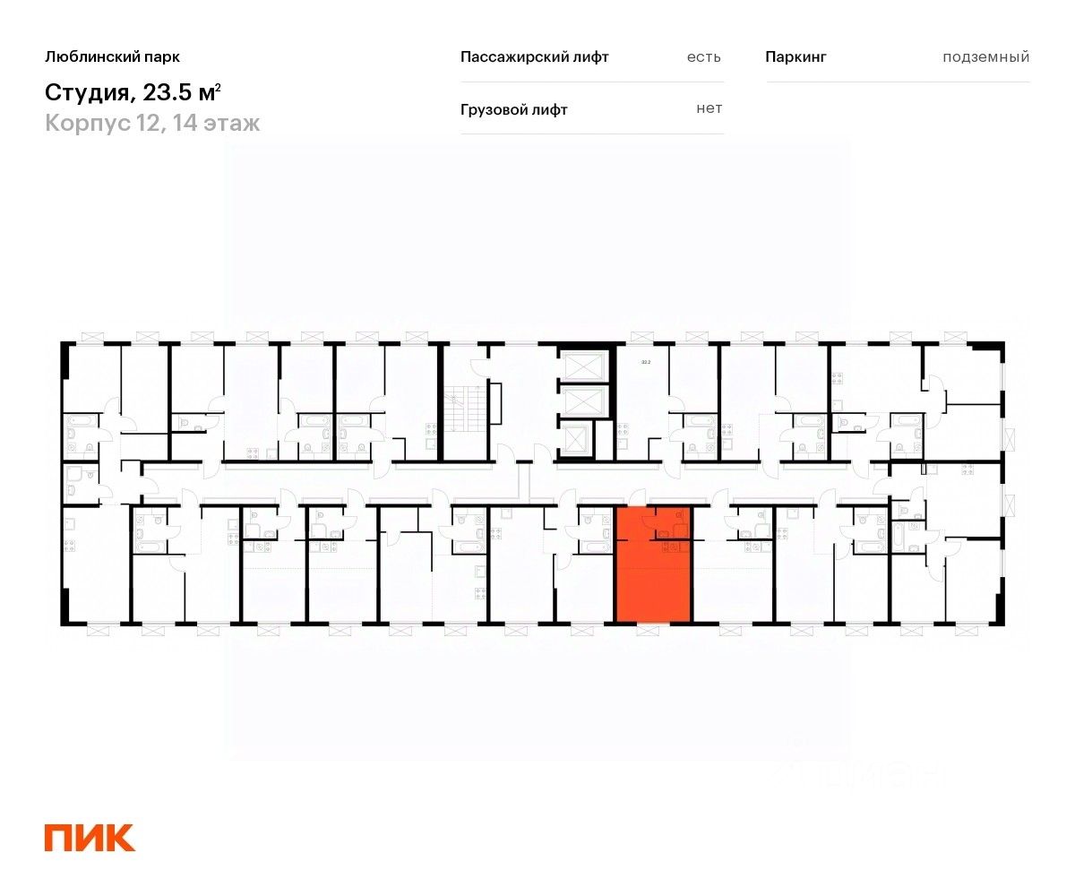 Продаётся квартира-студия площадью 23,5 кв.м на 14 этаже 25 этажного дома (Корпус 12, Секция 1) проекта ПИК Люблинский парк. Светлый просторный подъезд на уровне земли, функциональная планировка, большие окна, c отделкой. Жилой квартал ''Люблинский парк'' расположен на юго-востоке Москвы, в шаговой доступности от станции ''Братиславская''. На метро до центра ехать всего 30 минут. Также недалеко станция МЦД ''Перерва'', от которой можно уехать в Москву или в область. В проекте 54 жилых корпуса, три школы, семь детских садов, поликлиника. В районе есть все условия для комфортной жизни: торговые центры, школы, детские сады, поликлиники и спортивные центры. Рядом находятся усадьба Люблино, скверы и парки. Различные магазины, кафе и другие сервисы откроются на первых этажах, а на подземных будут паркинги с удобной навигацией. В зелёных дворах без автомобилей мы построим детские площадки и места для отдыха. А ещё ''Люблинский парк'' стал третьим проектом ПИК с большой игровой площадкой PlayHub, которая уже открылась между 1-м и 2-м блоками на безопасном расстоянии от дороги. Новое детское пространство ''Остров'' воплощает идею бесконечной игры. Ландшафт площадки — это ещё и игровой элемент, который помогает детям придумывать множество самых разнообразных игр. Здесь интересно детям разного возраста — от малышей до подростков. Жителям квартала Люблинский парк и их друзьям доступен проект ПИКСПОРТ — это бесплатные занятия с профессиональными тренерами. Тренировки по разным направлениям, например йога, фитнес, бег, воркаут, проходят как в группе на улице рядом с домом, так и онлайн. Артикул 659429 (Застройщик ООО СЗ ''Люблино Девелопмент'')